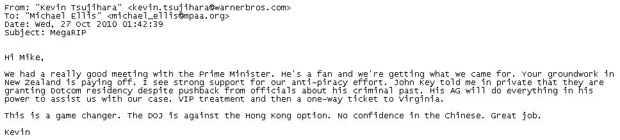 This is part of the Moment of Truth big reveal that Dotcom has been teasing recently and plans to unveil more of at an event taking place this evening. Dated 27th October 2010, the email claims that the “groundwork in New Zealand is paying off,” and that Key had made plans to allow Dotcom into the country, despite immigration not liking his criminal past. It's then alluded that he would soon be sent to the US on a “one way ticket to Virginia.”