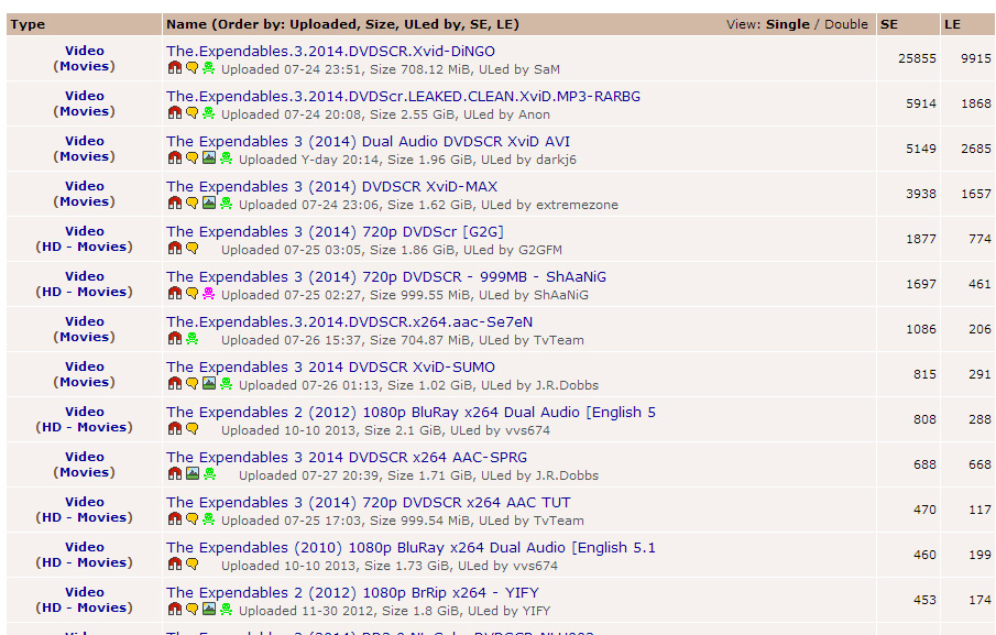 DVDScr don’t count. I mean it is just stupid to go and see a movie that you want to see in the worst possible audio and video quality. Especially a movie like Expendables with high speed scenes. Have a look also at the file sizes. Most are between 1 and 2GB. Even if it was a Bluray rip it would have been mediocre quality at best.