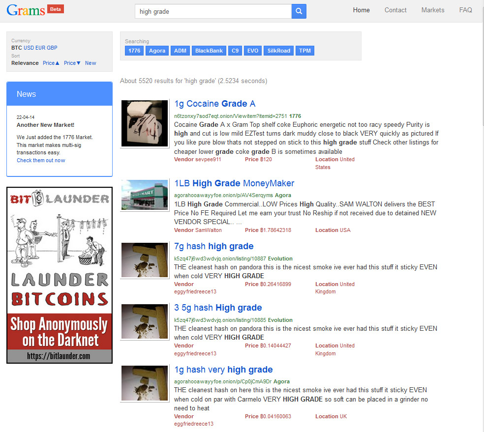 However the Grams author is thinking beyond providing a service to the community, he wants to get paid: “Within the next two weeks Grams will have a system similar to Google AdWords where vendors can buy keywords and their listings will go to the top of the search results when those keywords are searched for,” he said. “They will be bordered with an advertisement disclaimer so users know those are paid results.”