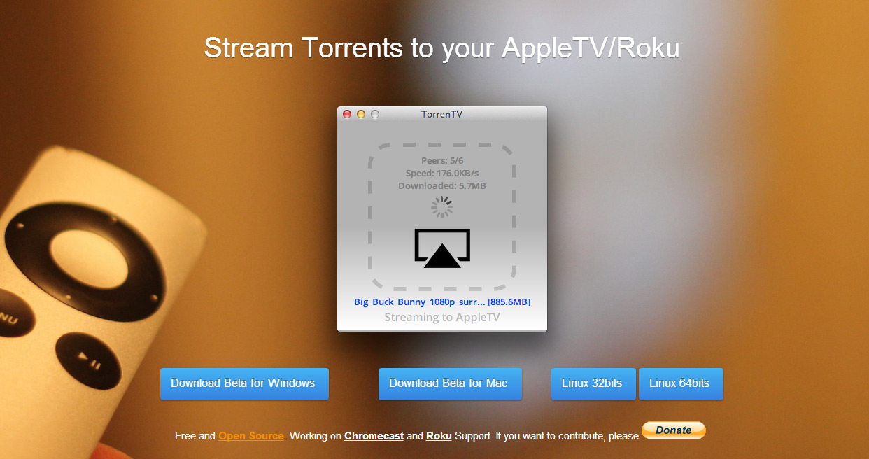 The client works like a normal torrent downloader, except when the files are dragged and dropped into TorrentTV, you can then use Airplay to stream it straight to your AppleTV or Roku set top box. Streamcast functionality is set to be introduced in the near future.