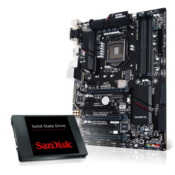 Right now, you can pick up a Gigabyte GA-Z170XP-SLI and a 240GB, 480GB or 960GB SanDisk Ultra II SSD from Novatech for £129.99, £174.99 or £259.99 respectively.