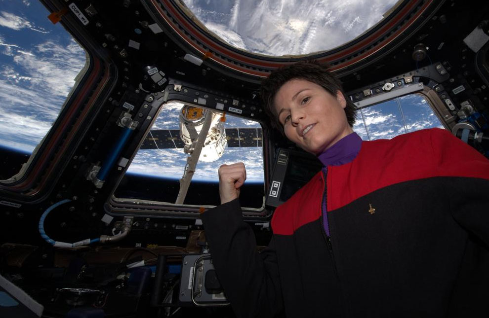 Even though life aboard the International Space Station is full of scientific experiments and tests which push the boundaries of human endeavour in the great black beyond, it's worth remembering that the people up there aren't so different from us. Chris Hadfield showed us that back in 2013 when he gave the world various renditions of songs from our recent past, and now Italian astronaut Samantha Cristoforetti has celebrated the docking of the Space X Dragon supply capsule by dressing up in full Star Trek attire.
