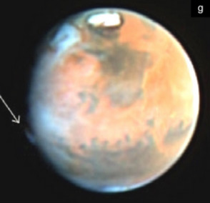 The plume of cloud, or haze – whatever it is – first appeared in 2012 and is said to be projected up to 200 kilometres from the planet's surface, giving a very distinct impression on images. However, it only seems to occur along the morning terminator and since showing up over a period of days three years ago, hasn't been seen since.