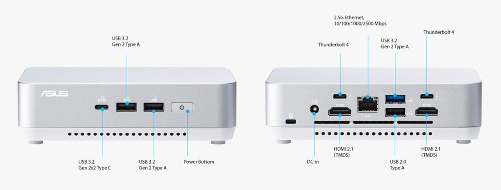 The ASUS NUC 14 Pro+ we saw comes with an Intel Core Ultra 9 185H processor. The idea here is that Intel/ASUS believes users will want decent performance when running generative Ai apps locally. It also includes HDMI 2.1, Thunderbolt 4 and various USB connections. ASUS has provisioned space for two M2 SSDs. The board will support DDR5 SO-DIMMS up to 5600MHz and you can attach up to four displays.