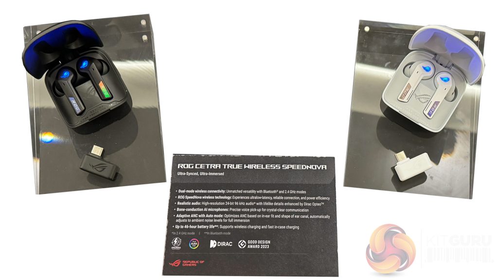 For high quality audio reproduction, the company is offering the ROG Cetra True Wireless SpeedNova earbuds – with support for advanced audio codecs like BT:SBC, AAC / 2.4 GHz: LC3 and LC3+. According to ASUS, these earphones and charging case combine to give up to 46 hours of battery life in Bluetooth mode.