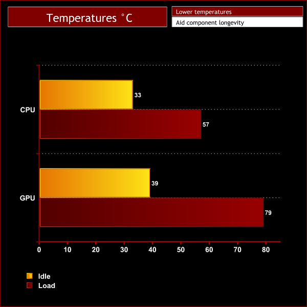 Idle temperatures are 33C for the CPU and 39C for the GPU which is pretty good considering it's the summer in the UK. After a good gaming session on this PC and stress testing it using AIDA64 for 10 minutes, the temperatures maxed out at around 57C for the CPU and 79C for the GPU. Overall this case appears to have no issues keeping components cool.