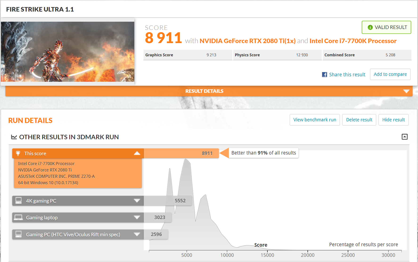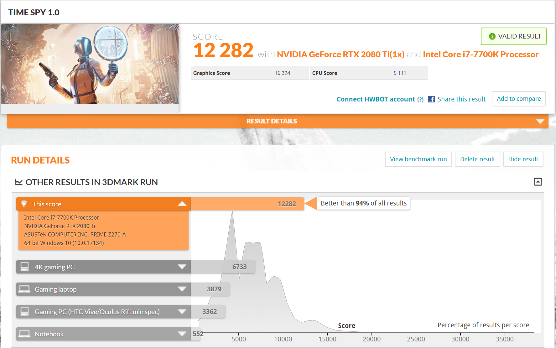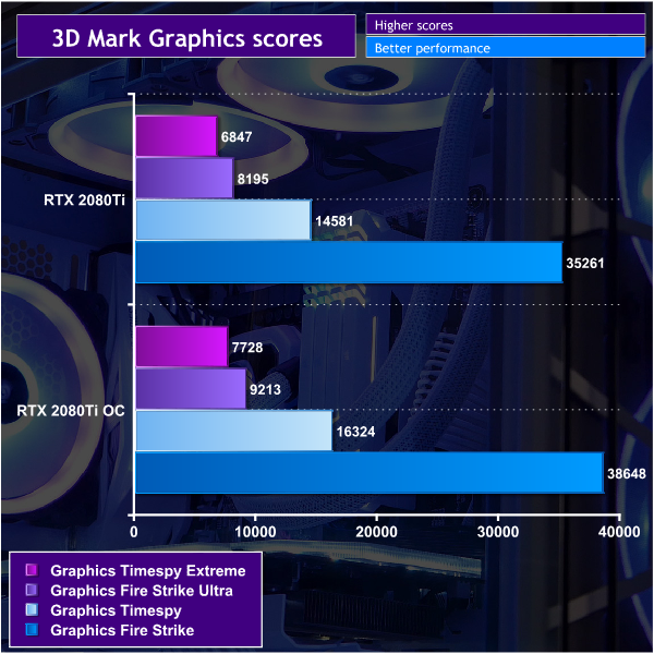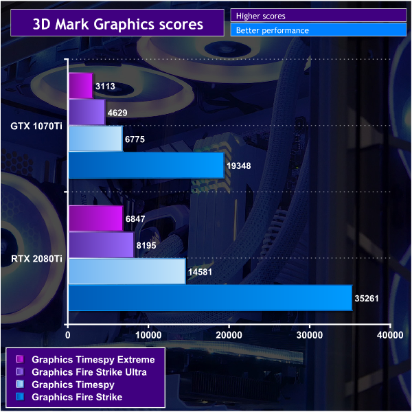 Taking a look at the comparison between the 1070 Ti and the 2080 Ti, it is safe to say that this is a pretty huge graphics upgrade. Our Time Spy score more than doubled benchmarks where the DX12 API really allowed the RTX2 080T i to stretch its legs. As the numbers rolled in I was smiling the whole way through at the jump in scores.