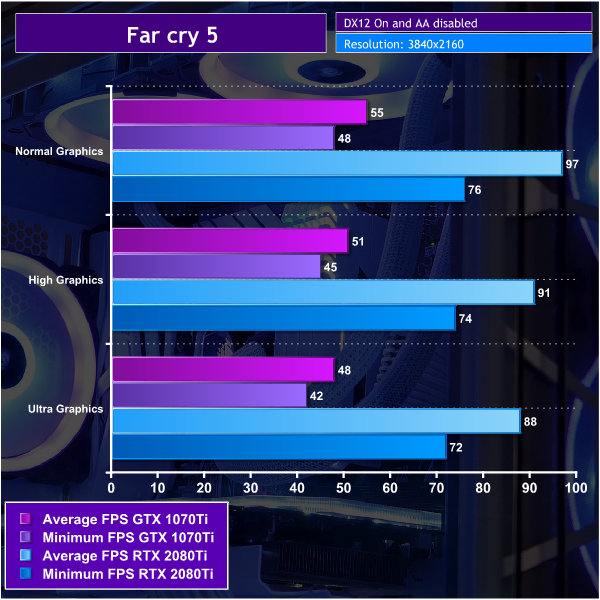 There wasn't quite the same dramatic increase in Far Cry 5 but the performance increase was still very significant and this game is going to be so much more playable for me now at 4K. I never saw it drop below 60FPS on ultra graphics and thats what dreams are made of.