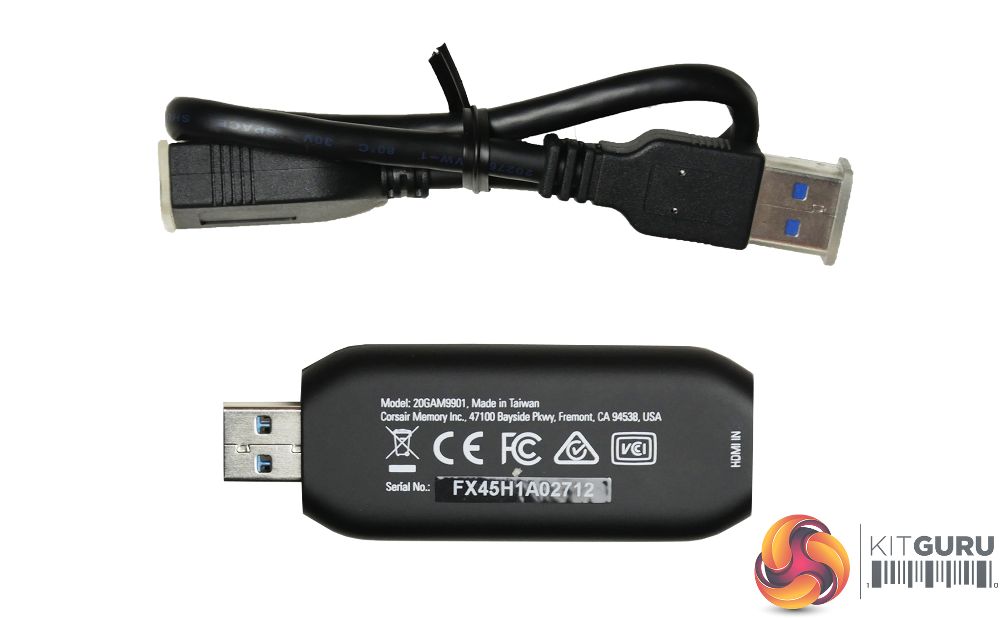 - Box contents: Cam Link 4K, USB 3.0 extension cable, Quick start Guide