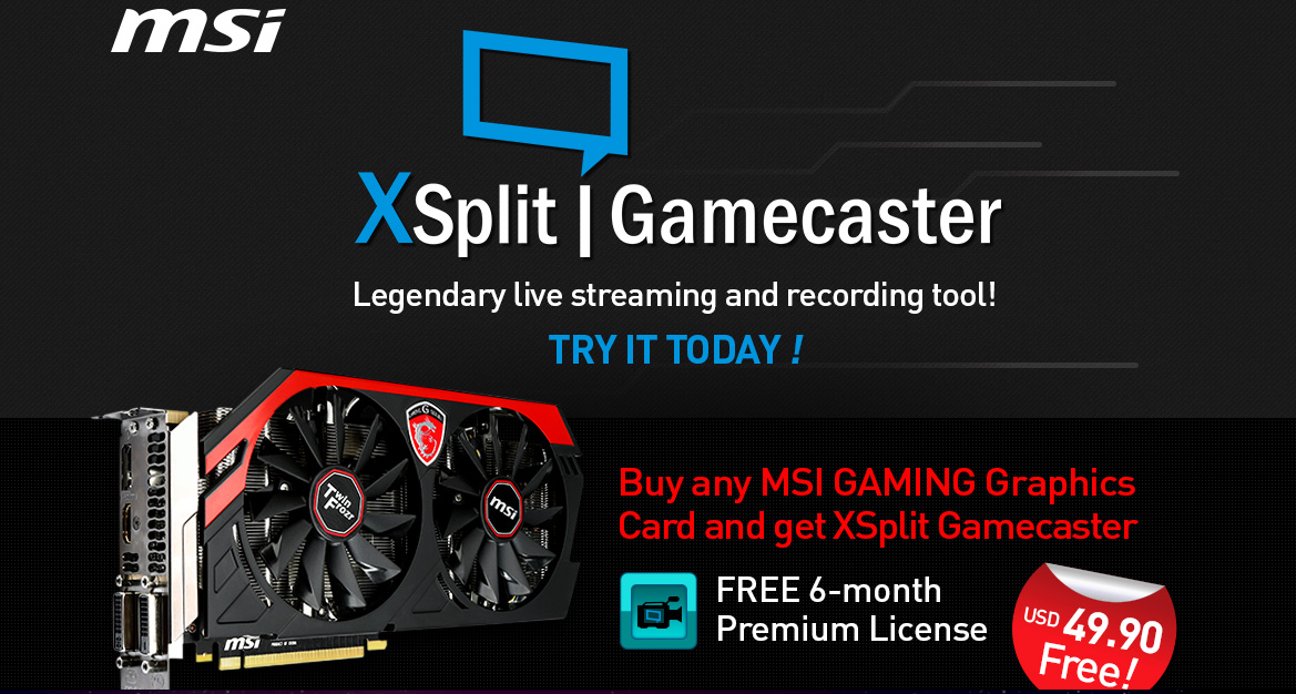 MSI has teamed up with XSplit Gamecaster in order to give a six month XSplit premium license to anyone who has purchased or will purchase an MSI Gaming branded graphics card between the 15th of April and the 31st of May.