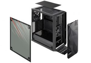 The main body has the dimensions 212 mm(w) x 395 mm(l) x 440 mm(h) and weighs in at 6.5 kg a bit over 14.33 lb. The chassis compatible with ATX, MicroATX, and Mini-ITX. The Meshify C TG Phantom Gaming Edition also comes with two pre-installed Fractal Design Dynamic X2 GP-12 120 mm fans for cooling.