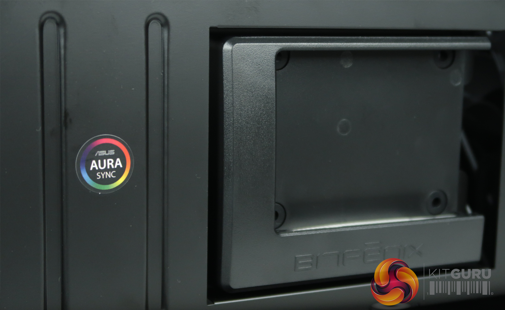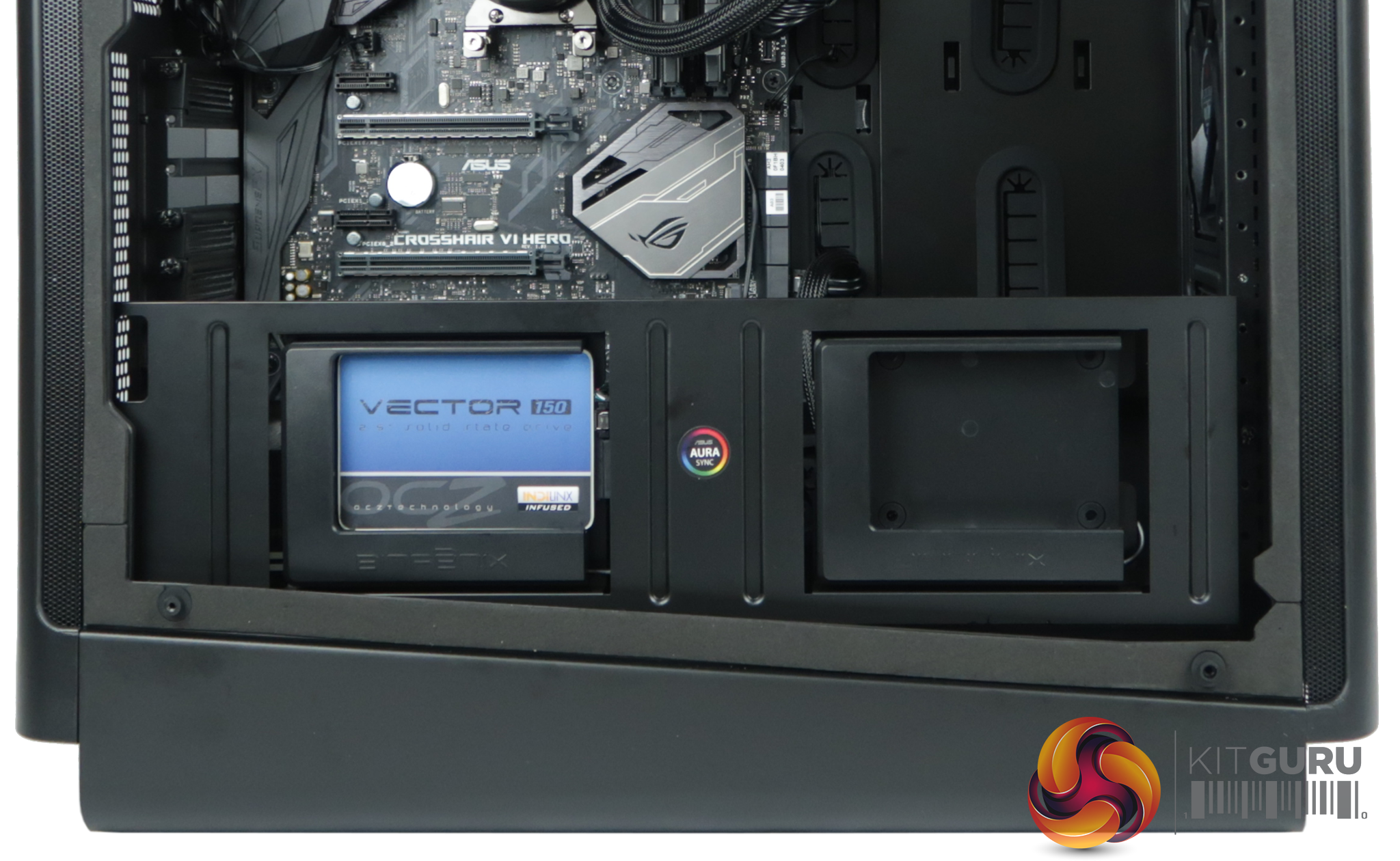 Asus AURA RGB support will prove popular with a specific audience. The case has two SSD bays at the front and they can be easily paired with the AURA lighting system if you have an ASUS motherboard that also supports this feature. In operation the lights are very bright at the default settings.
