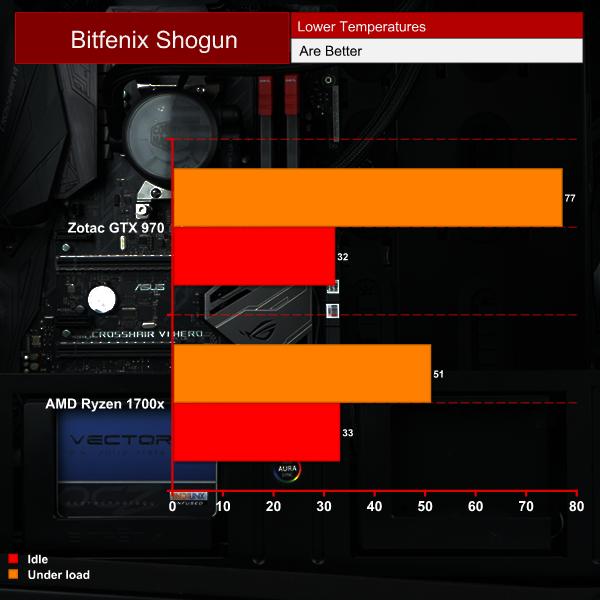 To put this case through its cooling paces we will be using a test system incorporating a Asus ROG Crosshair VI Hero , AMD Ryzen 7 1700x, GTX 970 and an SSD. This system allows us to produce a good amount of heat to effectively test the Shoguns cooling capabilities.