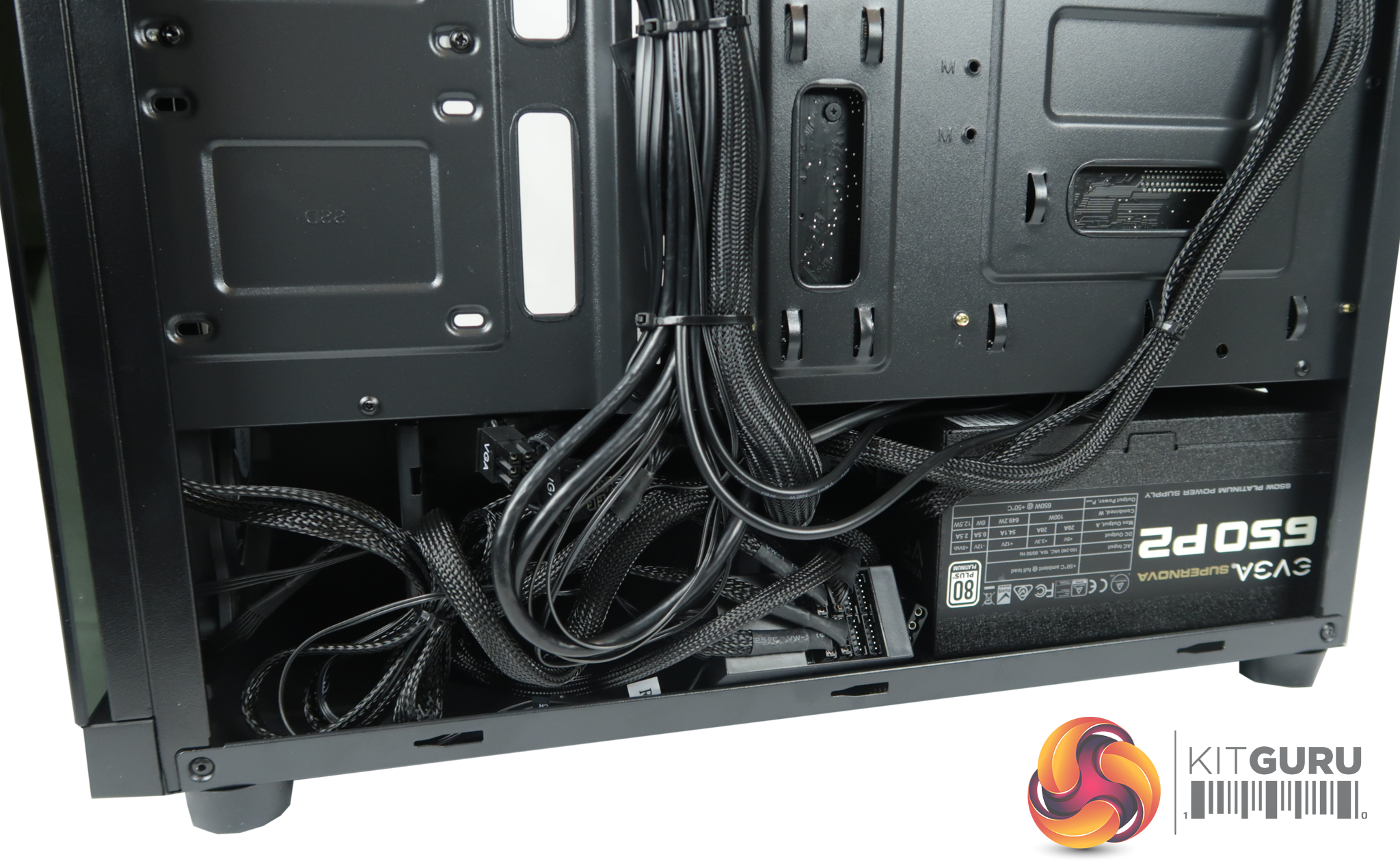 It delivers impressive cable management options and accommodates multiple places for cables to be neatly tied, out of sight. You can hide away 3 x 3.5 HDD bays and mount 2 x 2.5 SSD's above and they will be on show.