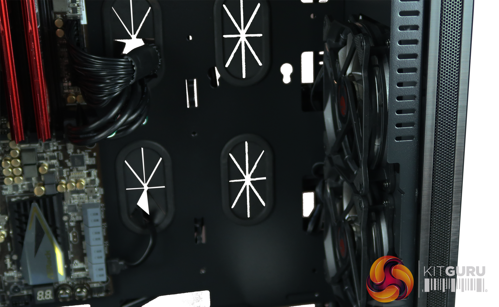 There is one in the rear of the PC and two in the front, both working together to pull air through. There is also the option to add several more fans if need be or even 2 x 360mm Radiators for the extreme enthusiasts out there.