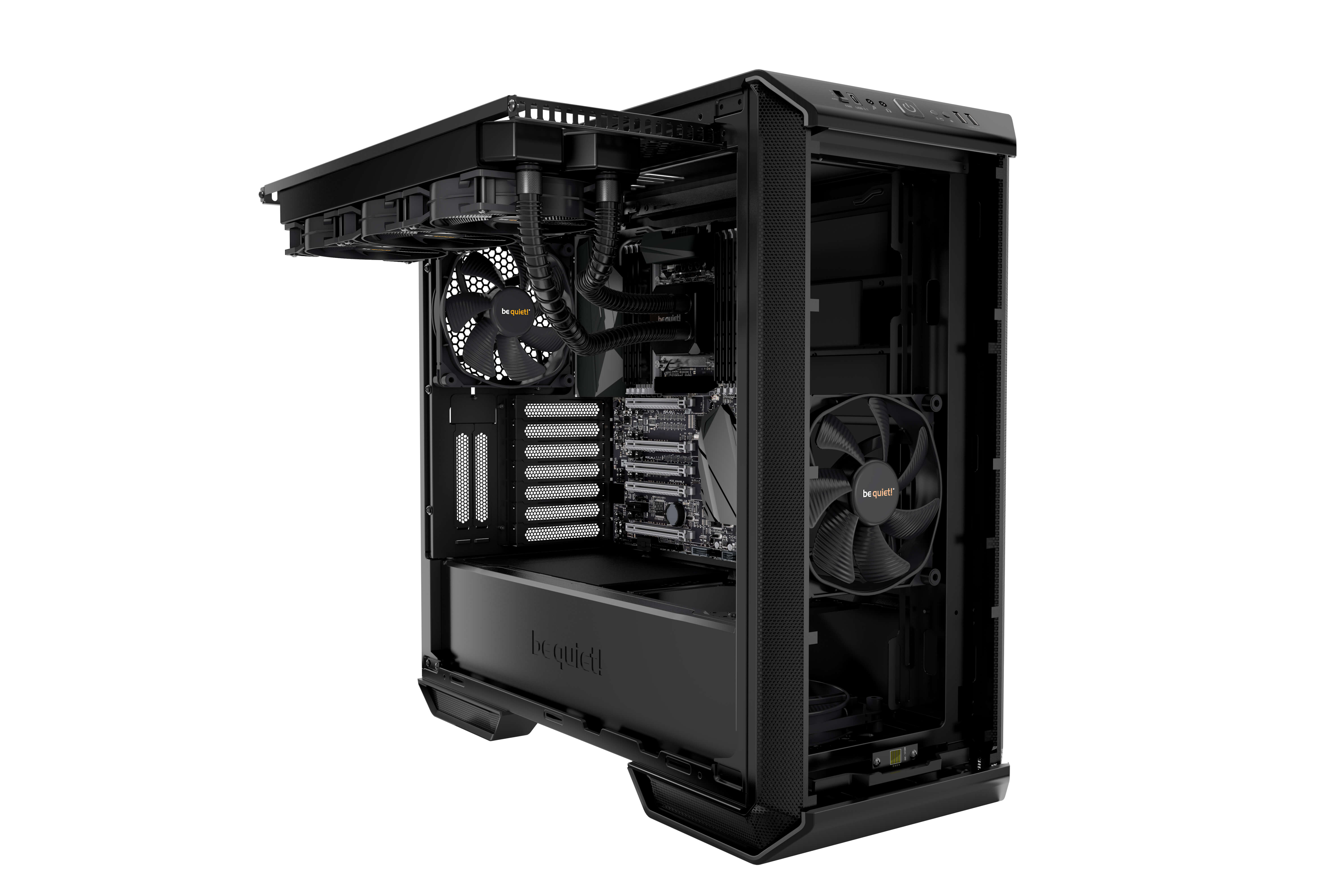 be quiet! includes two of its 140mm SilentWings 3 PWM 1600 RPM fans, one located as an intake at the front with the second silently flowing the air out of the rear. It’s fair to say that if more fans are required, the Dark Base 700 isn’t short of options.
