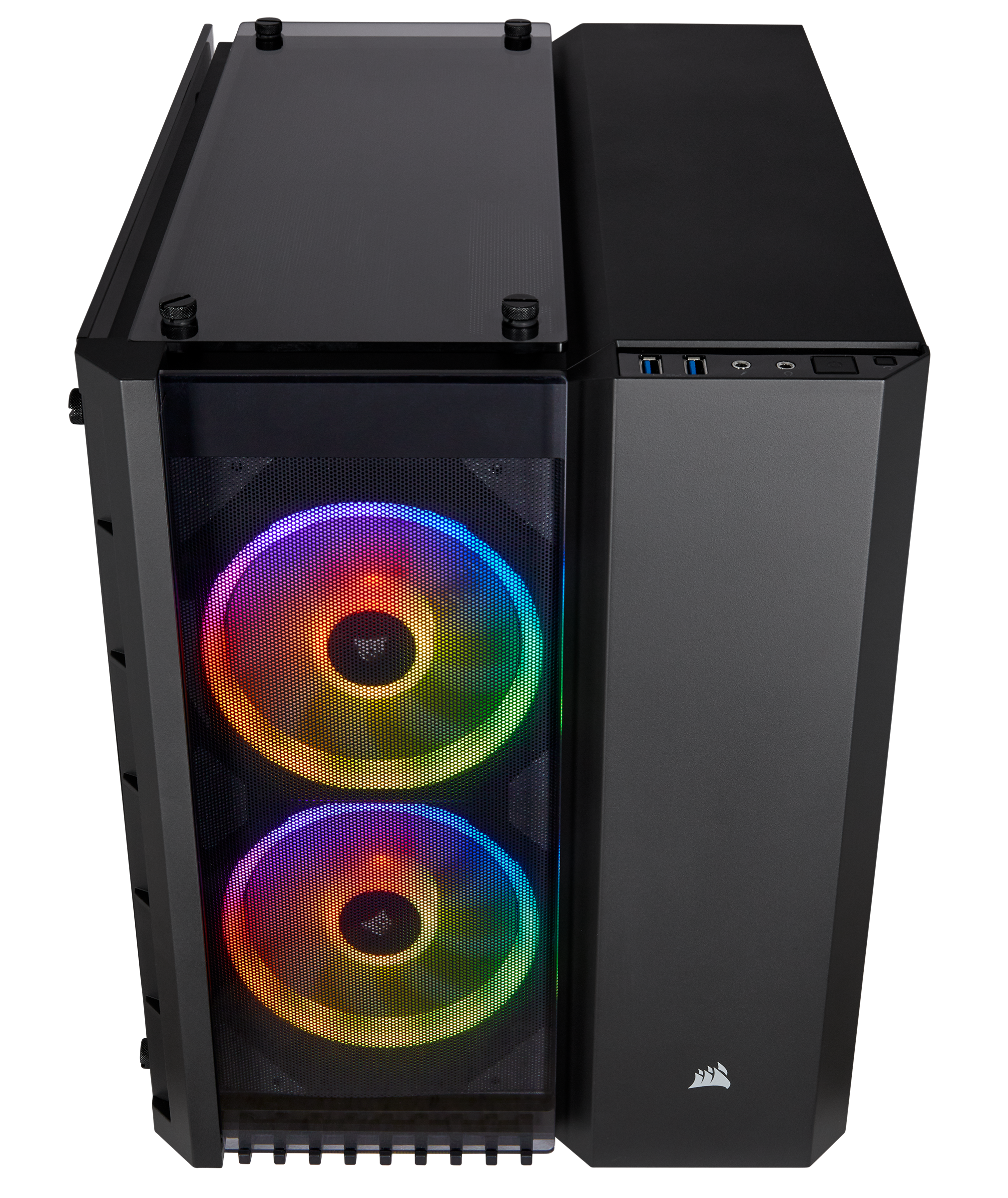 Its unique dual-chamber design helps to balance between performance and aesthetic, storing the power supply, cabling and drives in the rear chamber while displaying the motherboard, CPU and graphics card in the front chamber behind a tempered glass window. Corsair emphasises that this also helps to ensure the cooling of components.