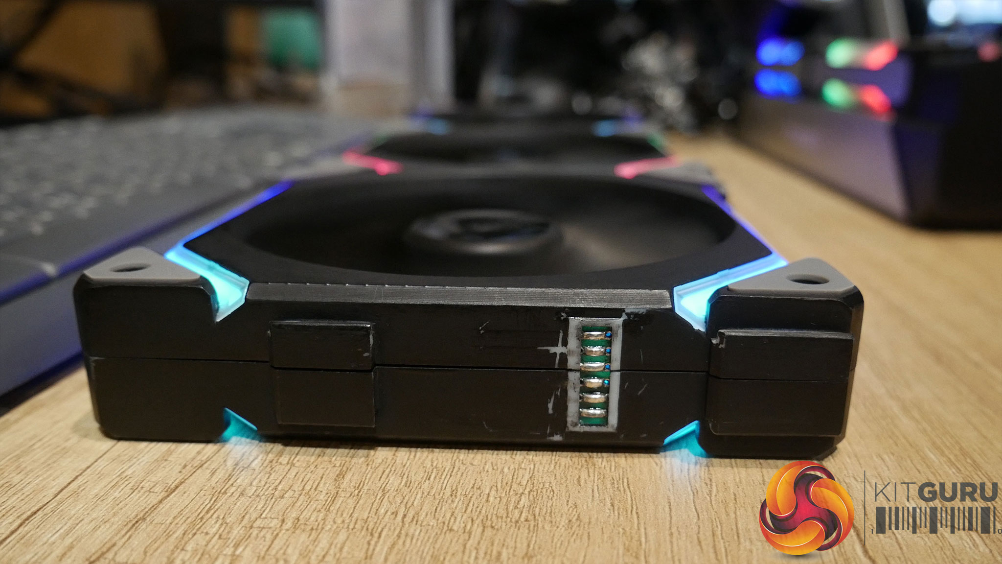 Lastly, we also saw some nifty concept fans which were actually 3D printed. The idea with these fans is they connect to each other via gold contact pins which handle both the PWM and RGB signal, meaning you only need one cable per ‘block' of fans – we saw three running daisy-chained together. It's certainly a neat idea that would help a lot with cable management.