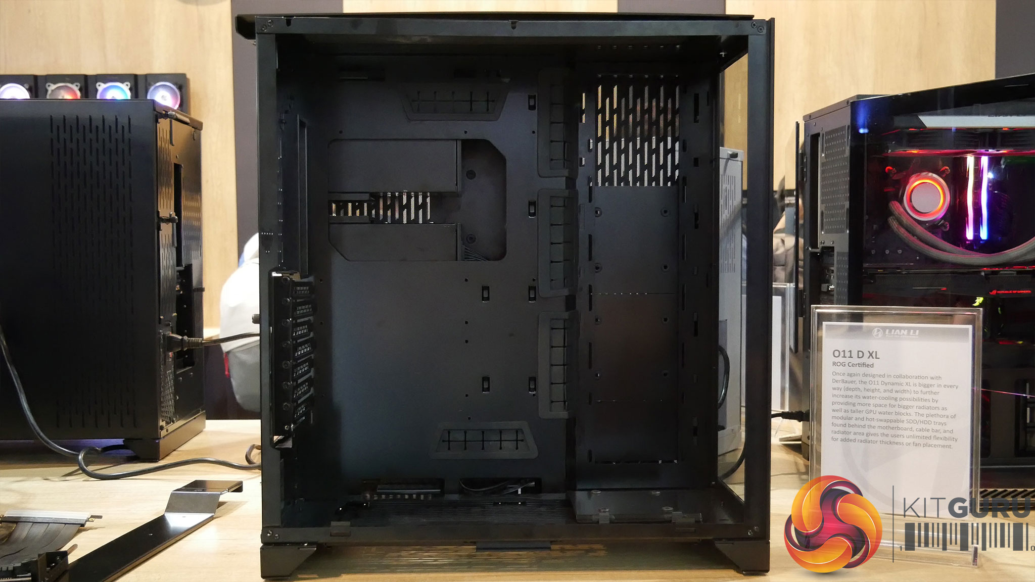 We also something new related to the original O11 Dynamic – a new distro plate for the case made by EKWB. Joe Robey was on hand to talk to us about the plate, which he says is mounted on the side of the case ‘to continue the ethos of the dynamic case' and keep your options open for one or two graphics cards, and one or two radiators, and the CPU block. We didn't hear a price for the distro plate, but it will be available through Lian Li or EKWB.