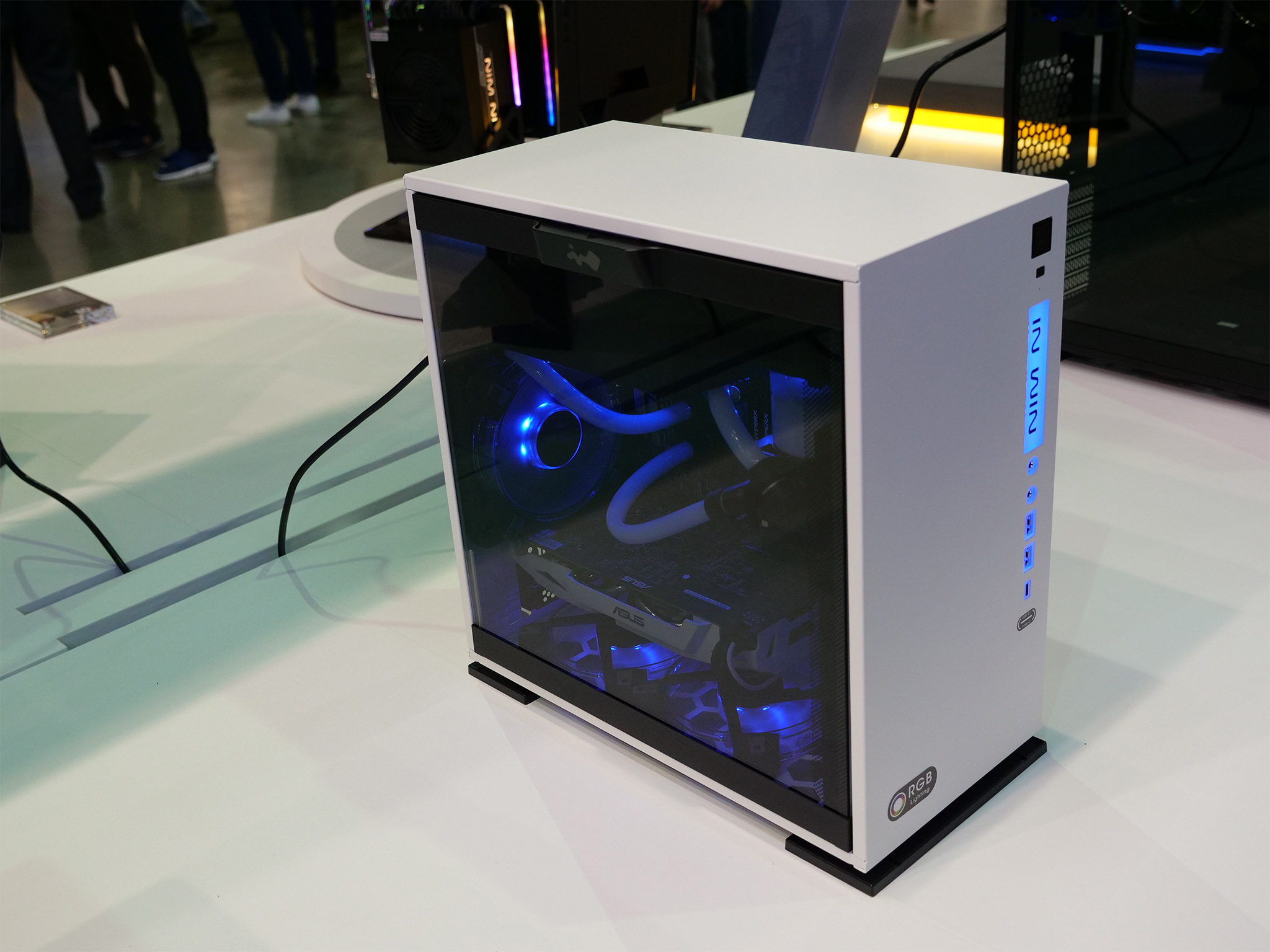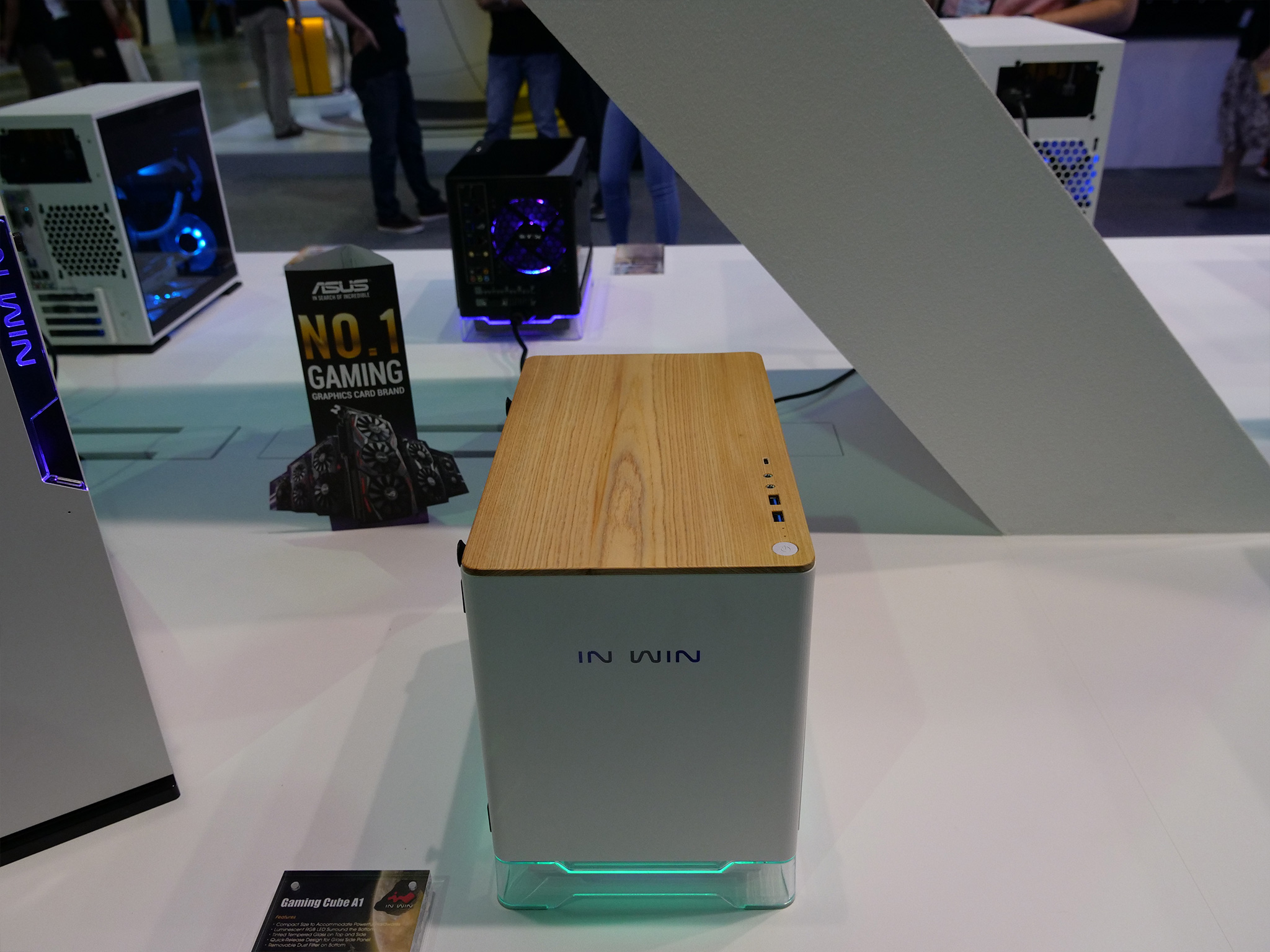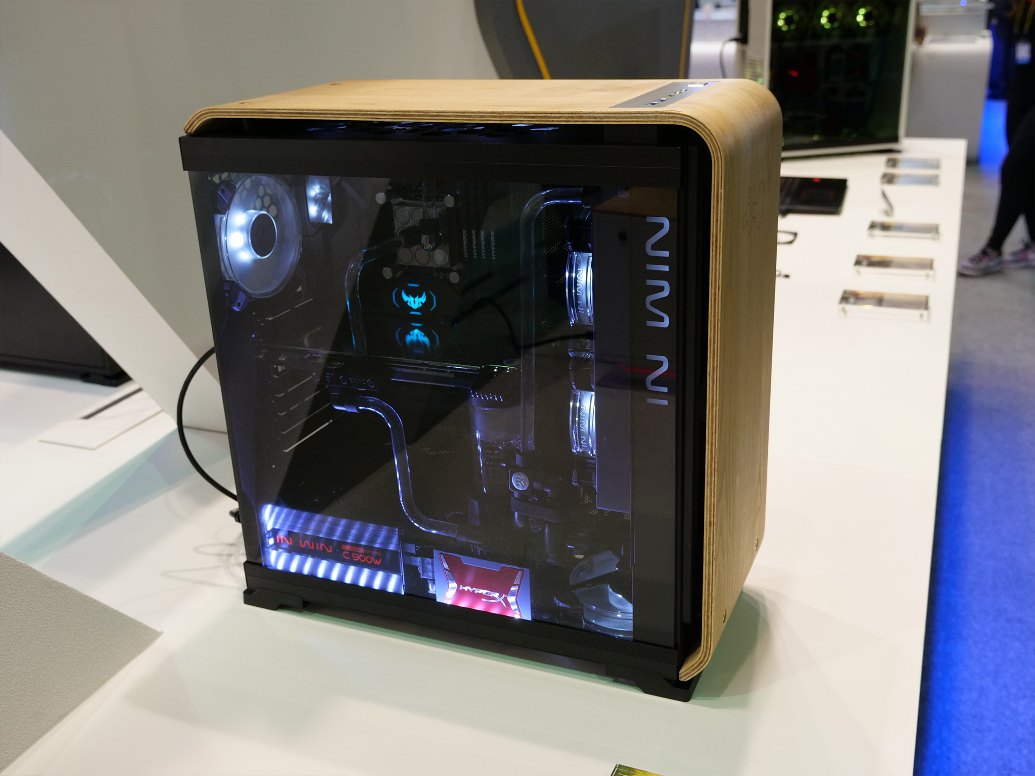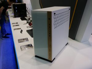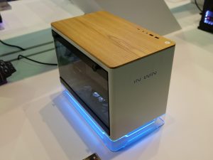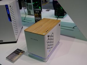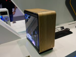 Elsewhere, In Win was also keen to show off its three new cases with wooden panelling: the 305, the 806 and the Gaming Cube A1. As you can see, the 305 has a much subtler wooden panel while the chassis seems to keep the same internal design as the 301. The 806, however, goes all-out with its curved wood (which our man Leo Waldock believes to be plywood) while its interior is a bit more conventional. Lastly, the Gaming Cube A1 is an ITX design with in-built RGB LEDs and two tempered glass panels.