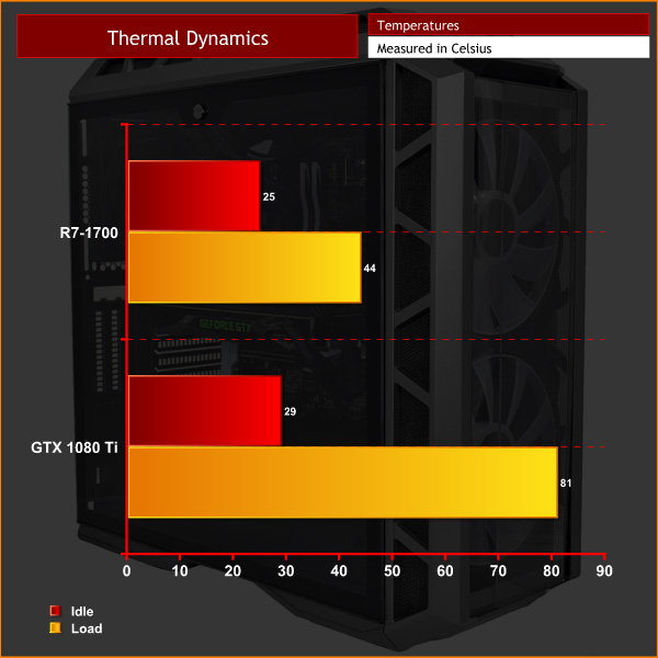 As you can see, thermal performance of the H500P is excellent. The two 200mm fans clearly deliver excellent airflow to all areas of the internal chassis and our core components definitely demonstrate that.