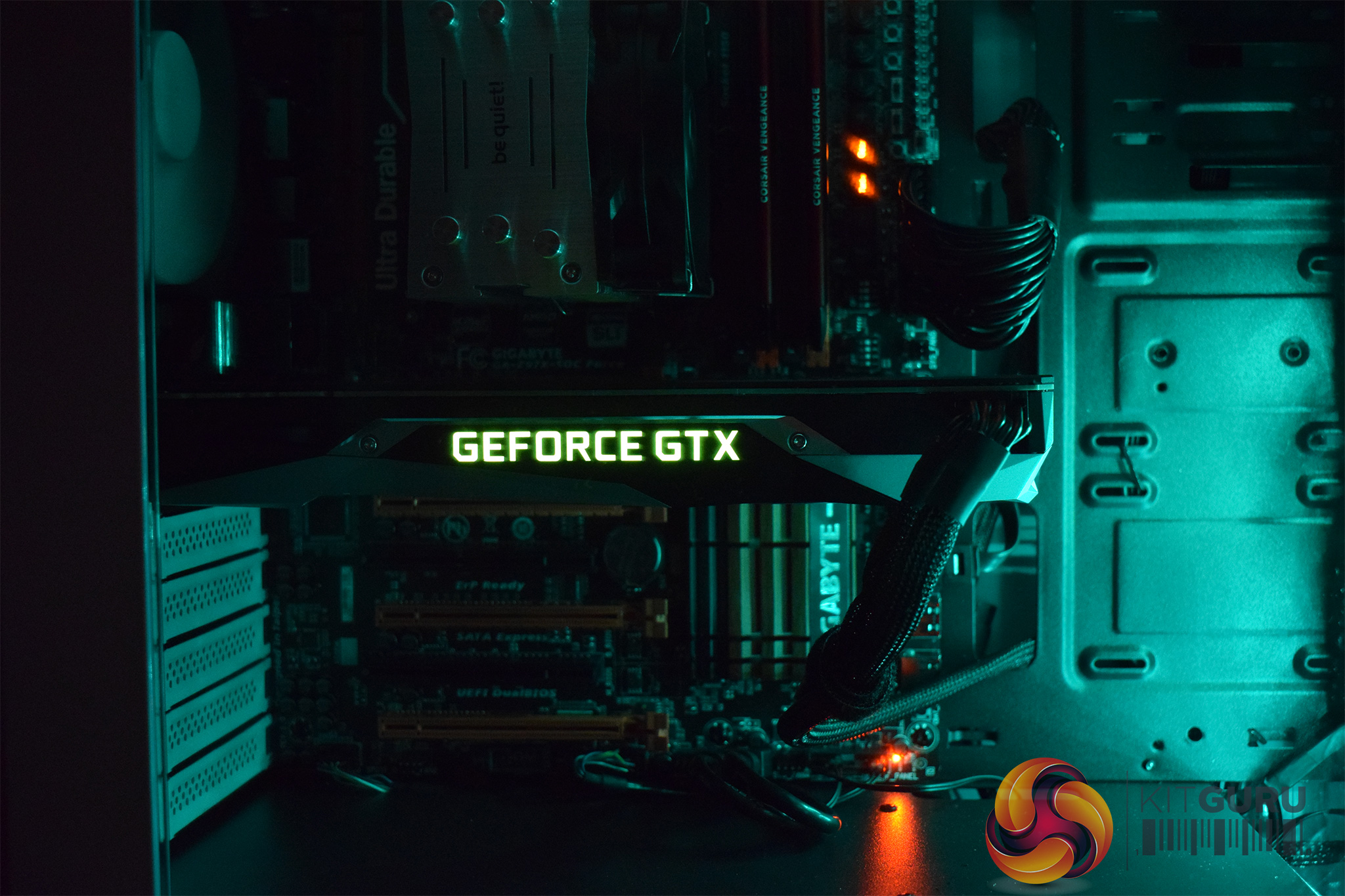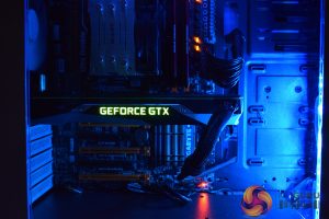 Above we get a look at the system powered-on. The different colours you can see come solely from the two RGB fans at the front of the case – they are nice and bright, with good coverage across the case. That being said, if you have a compatible RGB strip, you can actually connect this to the small RGB controller to extend the lighting further.
