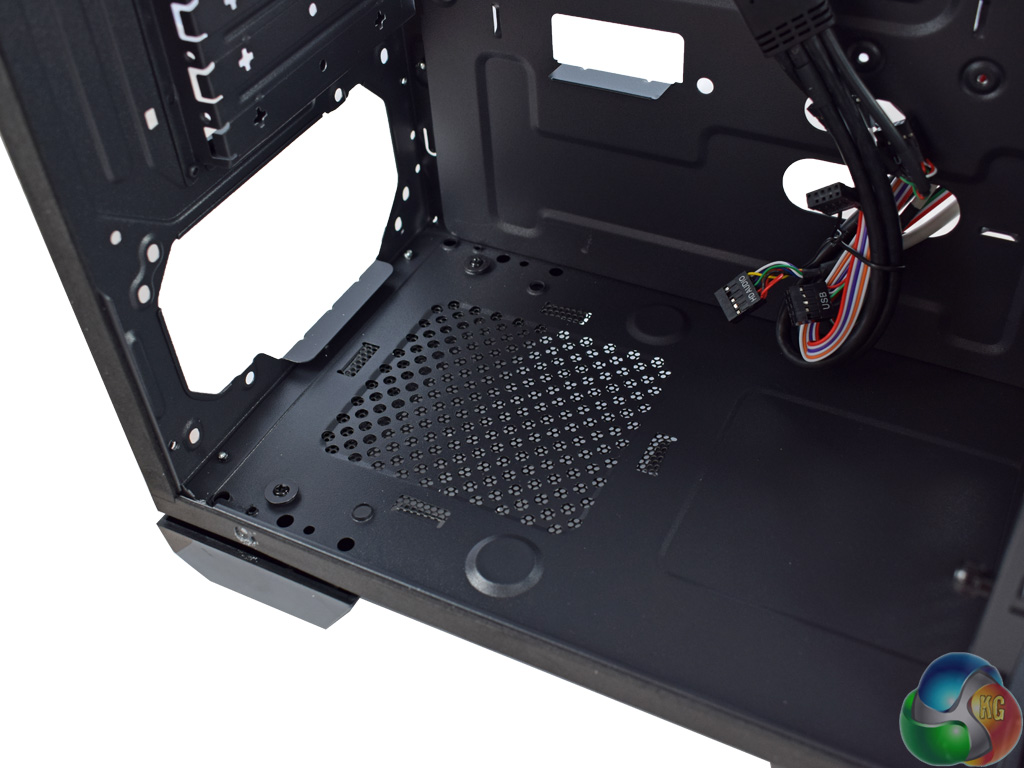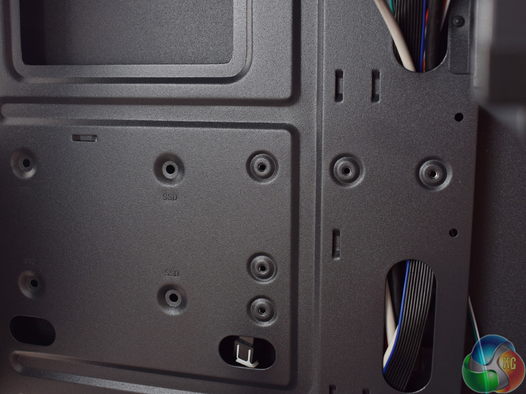 Just under the motherboard socket cut-out is a mounting space for an SSD, too. Any SSD you may wish to install here would have to be screwed in before motherboard installation, though, otherwise the screw holes become inaccessible.