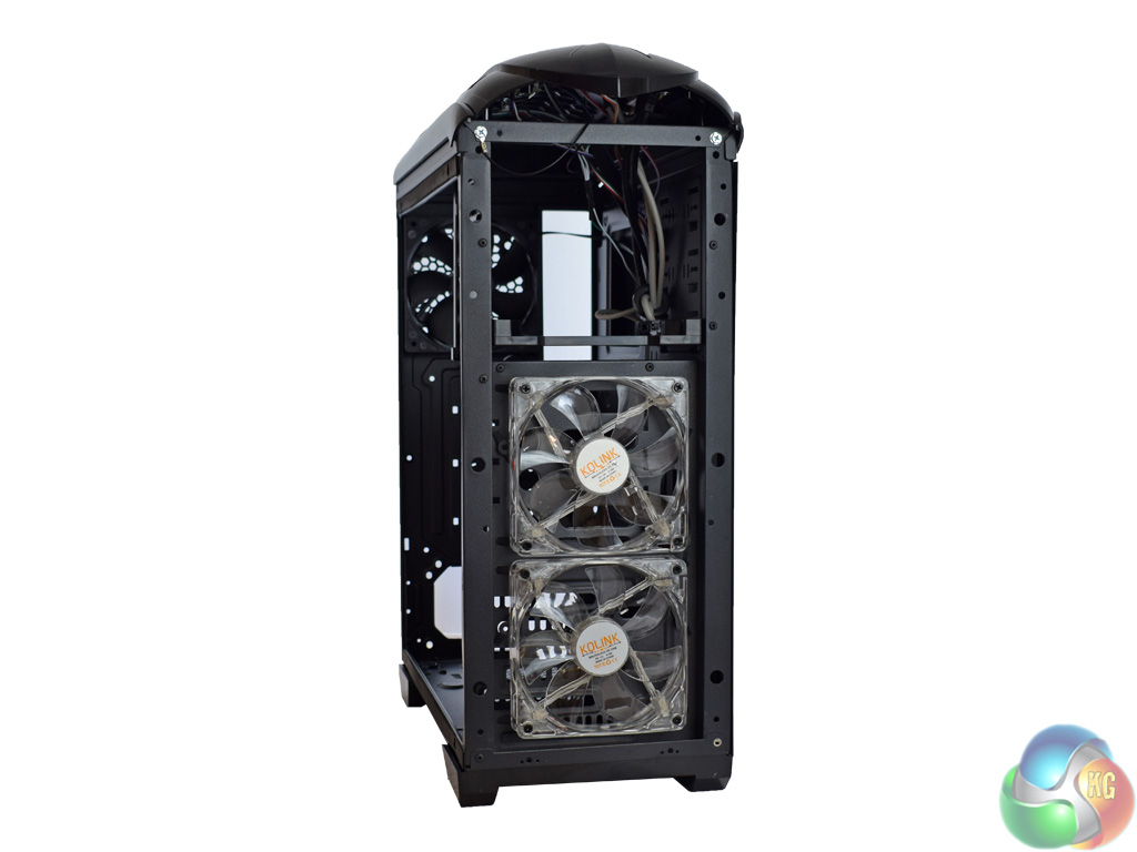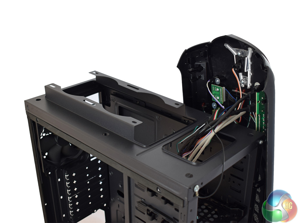 The top of the case can support 2x120mm fans as well, or even a 240mm radiator. However, the top panel cannot be fully removed due to the front panel connectors being wired in place. This could make it tricky to access the top fan mounts once you have built the system, as presumably the I/O cables will be tied down quite tightly.