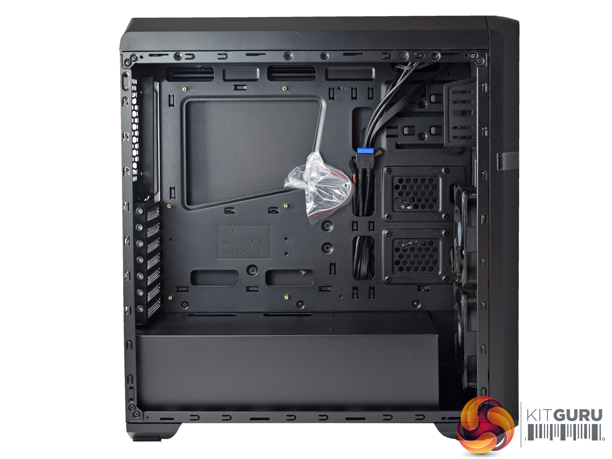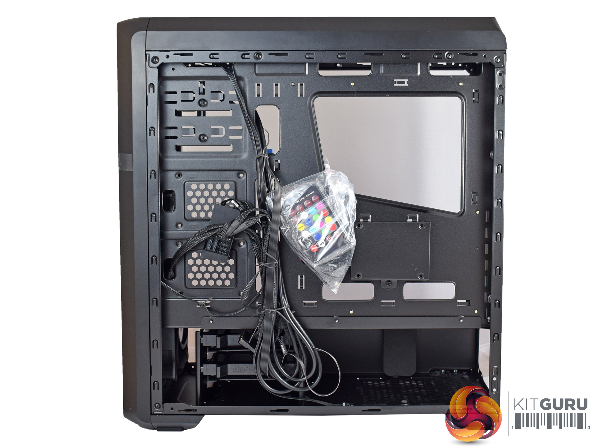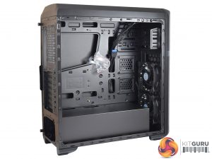 Inside, it is great to see the same cable management options as can be found with the Falcon – plenty of cut-outs to route your cables is one key area that we praised in the Falcon review. A PSU shroud is also a top-quality feature at this price-point as it keeps everything looking clean and tidy.