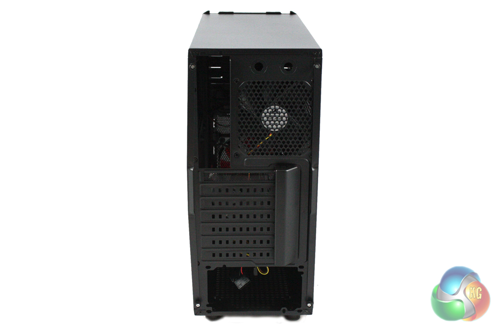 Moving round to the rear of the case, we find a fairly standard layout, consisting of a 120 mm exhaust fan vent and seven expansion slots. As you might expect from a budget-focused case, the covers aren't replaceable. So once you've removed them, they cannot be replaced.
