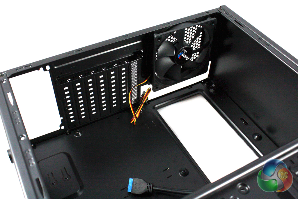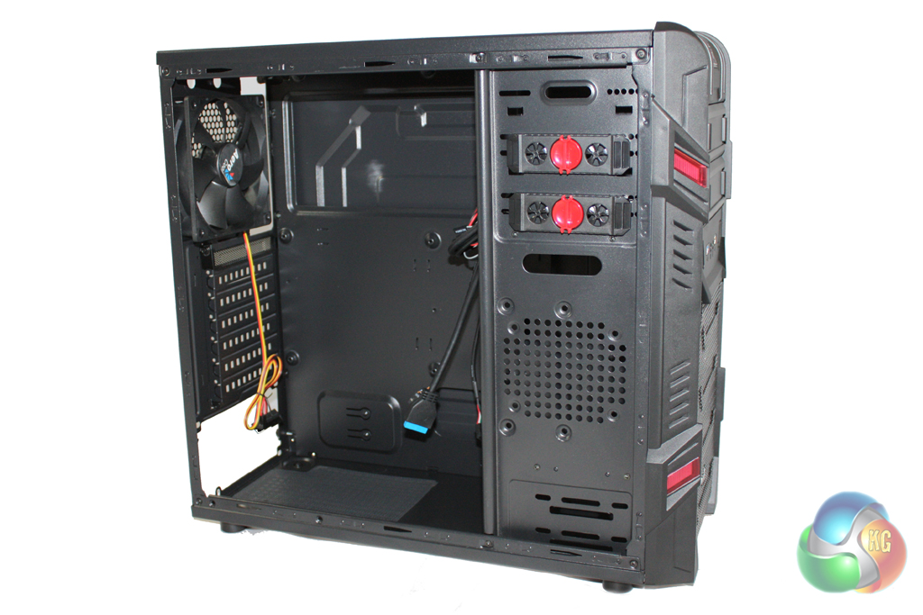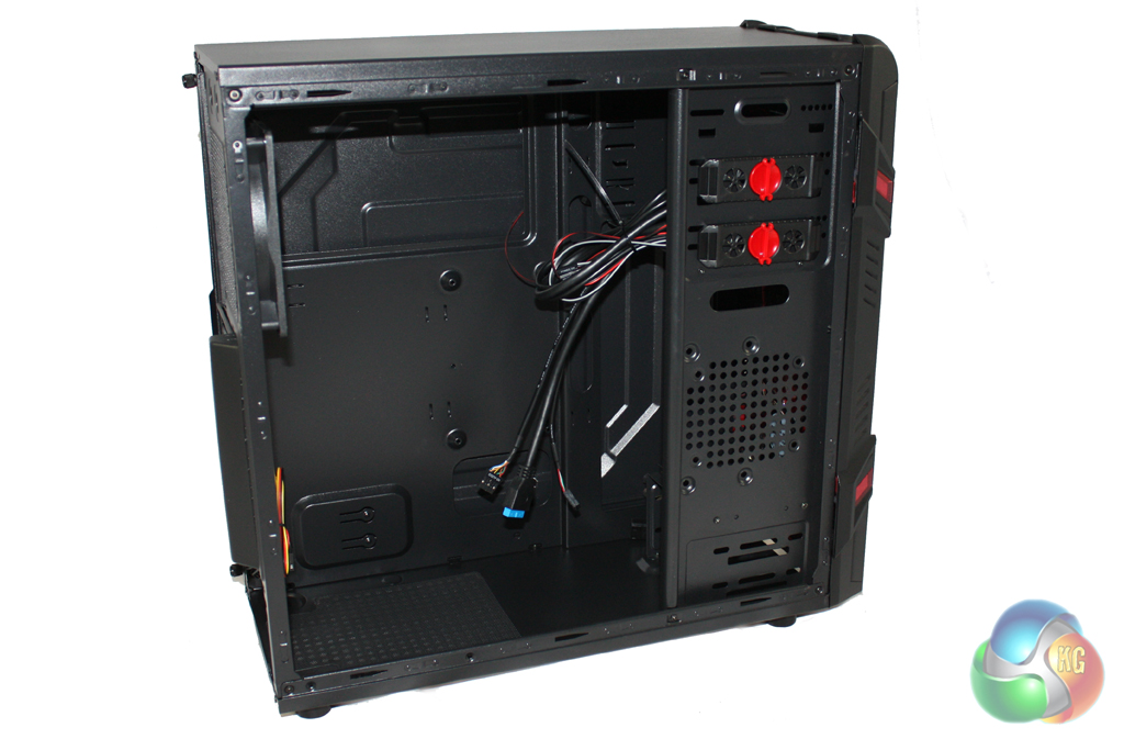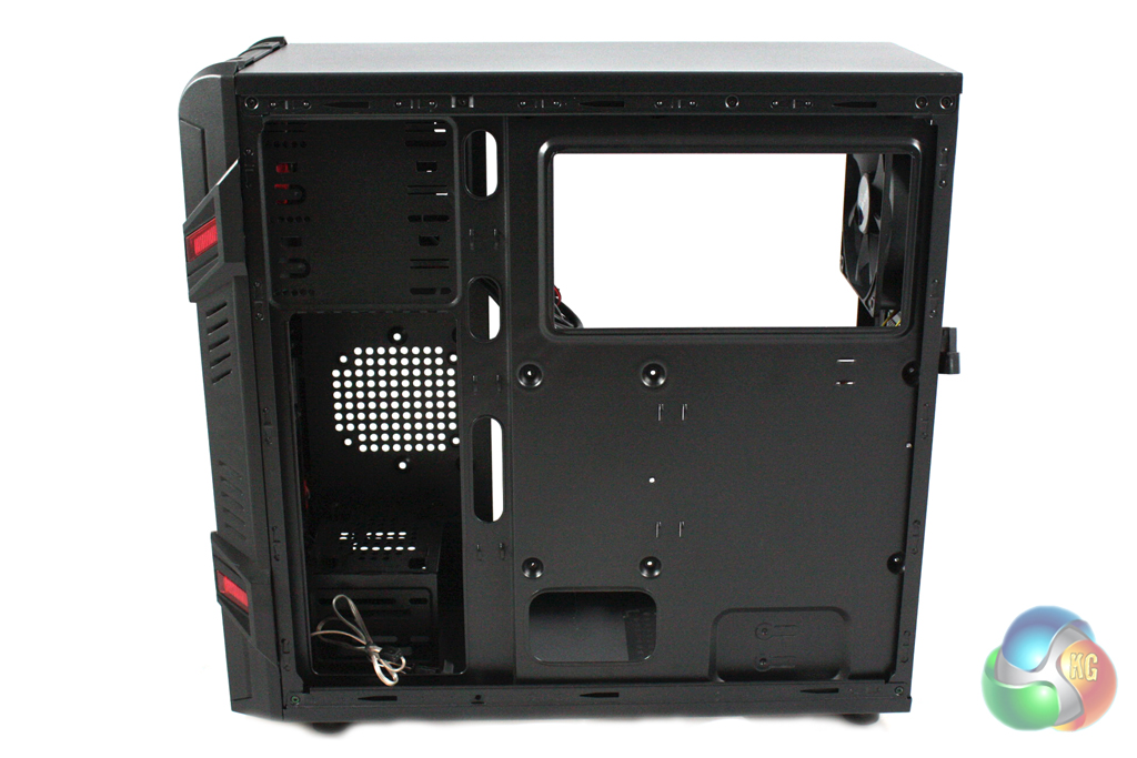 Unfortunately, there isn't a great deal of room behind the motherboard tray for cable routing but this cannot really be expected at this price point. There are a few holes cut into the motherboard tray for the 24-pin power connector and to power the graphics card, as well as a small amount of room behind for these cables.