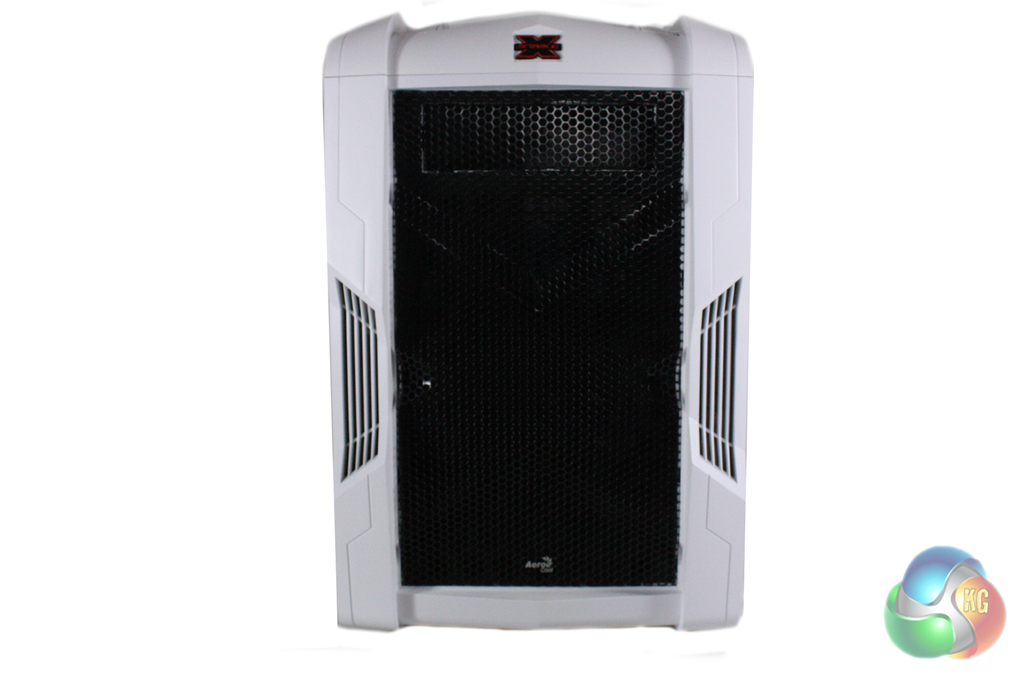The front of the case consists predominantly of a large mesh vent which facilitates airflow to the interior of the case. Aerocool supply the case with a large 200mm blue LED intake fan in the front, although this can be replaced with twin 120mm or 140mm fans if desired. There are also blue LED lights behind the vents on either side of the front panel.