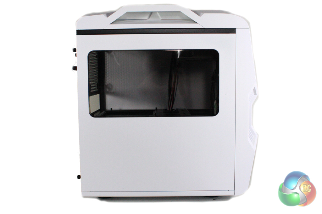 On the left side panel of the case there is an acrylic side window which lets us see the system within the case. The window looks directly over the expansion card area, so will give a good view of the graphics card.
