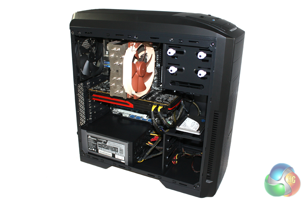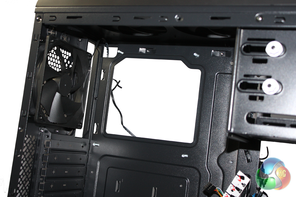 There is a reasonable amount of room to work with inside the case but it isn’t the most spacious design we have experienced. The internal layout is clean enough, with the hard drive bays over on the right hand side of the case.