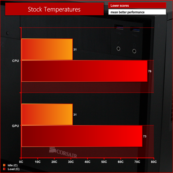 To test the thermal performance of the Corsiar Obsidian 250D we loaded our test system for 15 minutes using Prime95 and Furmark and recorded the maximum temperatures reached using CPUID Hardware Monitor. We then restarted the system and left it for 15 minutes before recording idle temperatures.