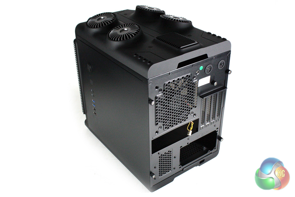 The design of the rear of the case shows us how the components will be laid out internally, with the power supply at the bottom and the motherboard mounted horizontally above it. There are four expansion slots in total, meaning this case can support both mini-ITX and micro-ATX motherboards.