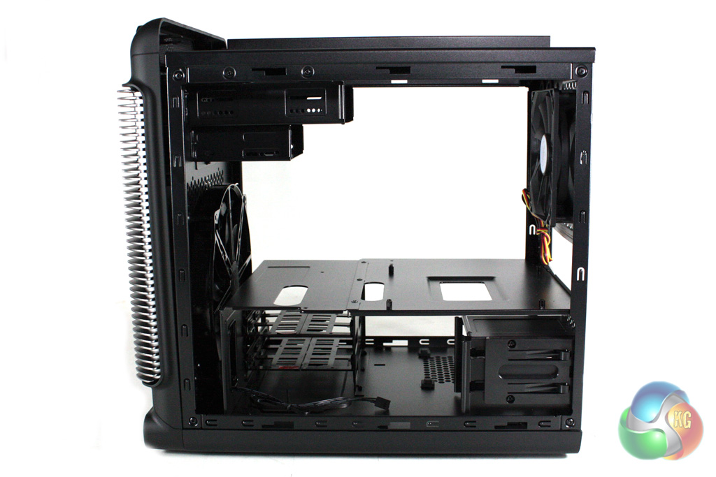 Accessing the interior of the case is made simply by the plastic covered thumbscrews which Deep Cool have chosen to use to secure both side panels into place. These are much easier to grip than the metal ones used by most manufacturers and save us from having to break out our screwdriver straight away. The inside of the case is painted entirely in black, which should compliment most components aesthetically.