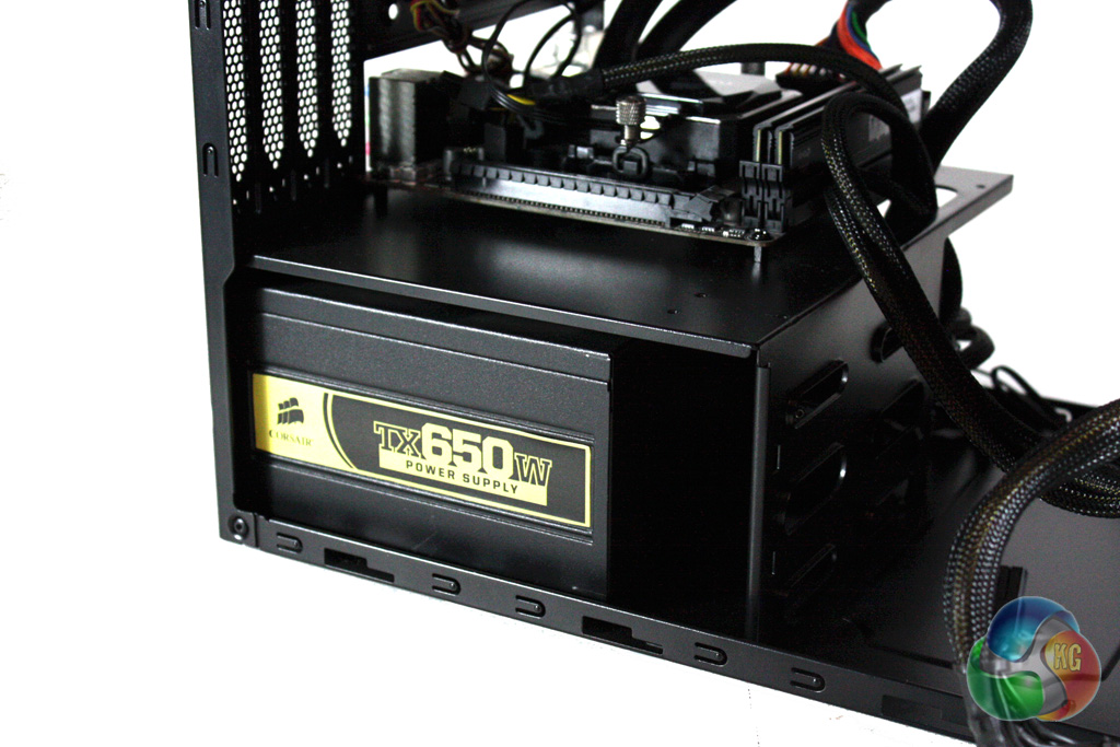There isn't a great deal of room in the case for power supply installation – for example our usual Seasonic Platinum 1000W is too large for the space available. We were forced to use a Corsair TX650W non-modular power supply instead, which also highlighted the lack of cable routing options in this case.