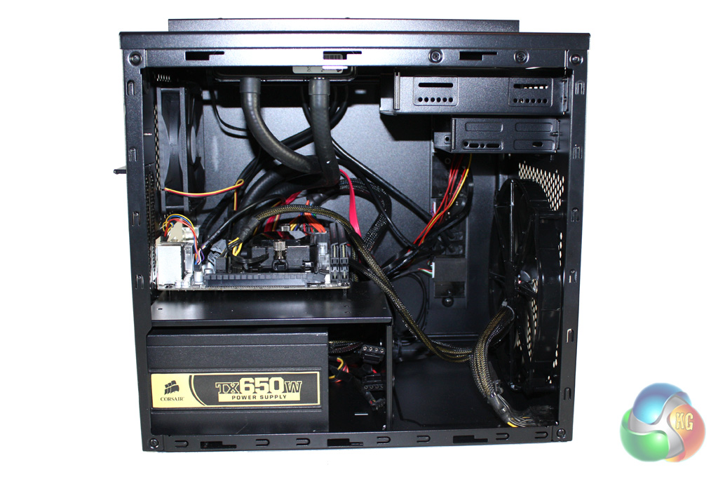 There is up to 200mm of room in the case for CPU coolers, however we chose to install a Corsair H75 which fits nicely in the roof. There is room for all-in-one CPU coolers with 240mm radiators in the roof, making this case ideal for those looking to build a powerful but compact gaming system.