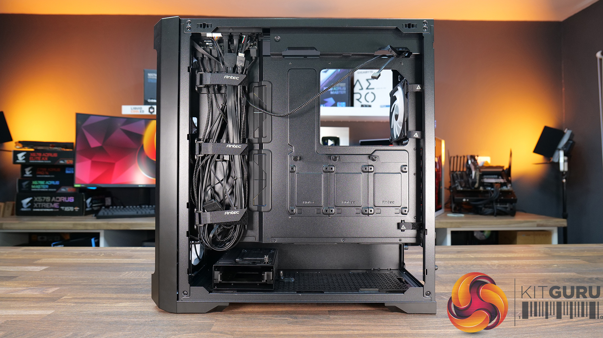 However, we did run into an issue with the temperature display and Antec iUnity software not fully recognising our discrete GPU, therefore the case temperature display would not show the GPU temperature (it turns out the temporary solution is to use a legacy version of iUnity). The case has a couple of modular panels such as the removable rear PSU bracket and a top radiator/fan mount that can be removed, all case panels are on quick-release fasteners which work well and the overall build quality of the case is top-notch.