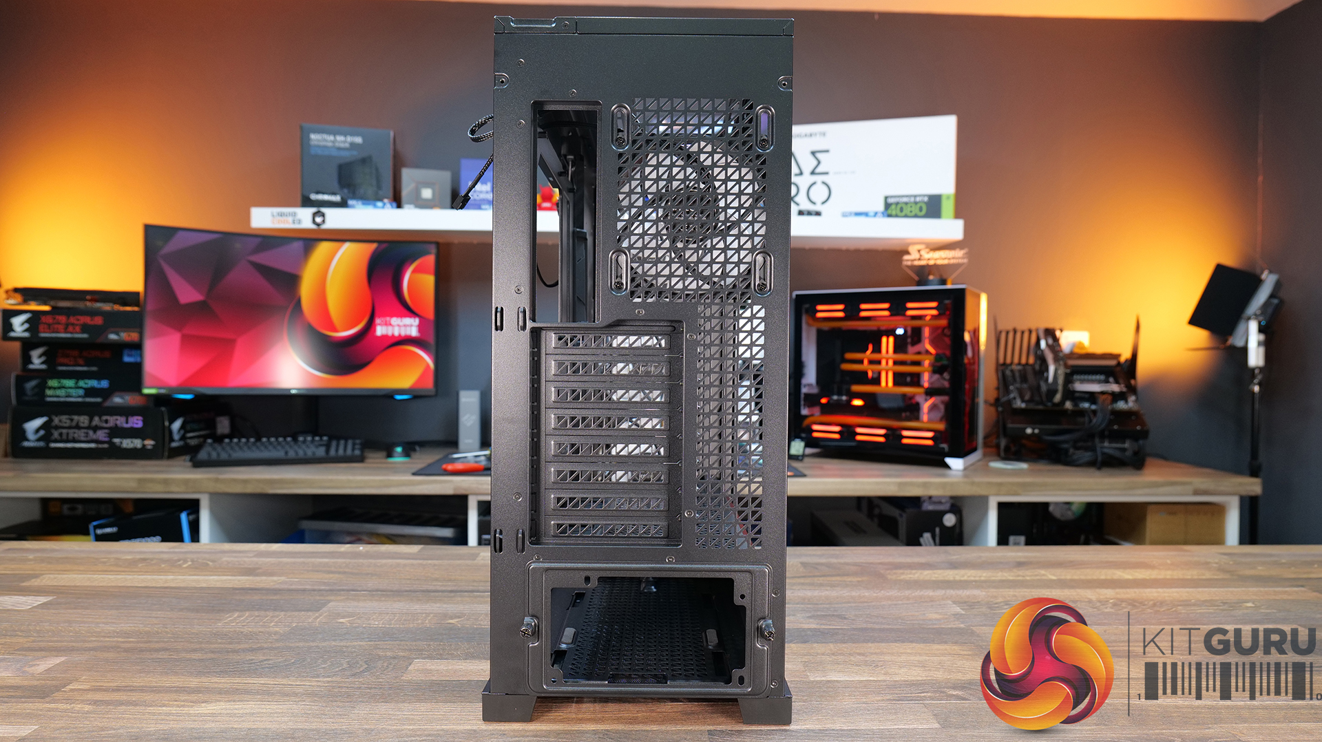 - The left-hand panel is manufactured from 4mm thick tempered glass to showcase internal components, while the right-hand steel panel is perforated at the bottom to enhance ventilation and heat dissipation.