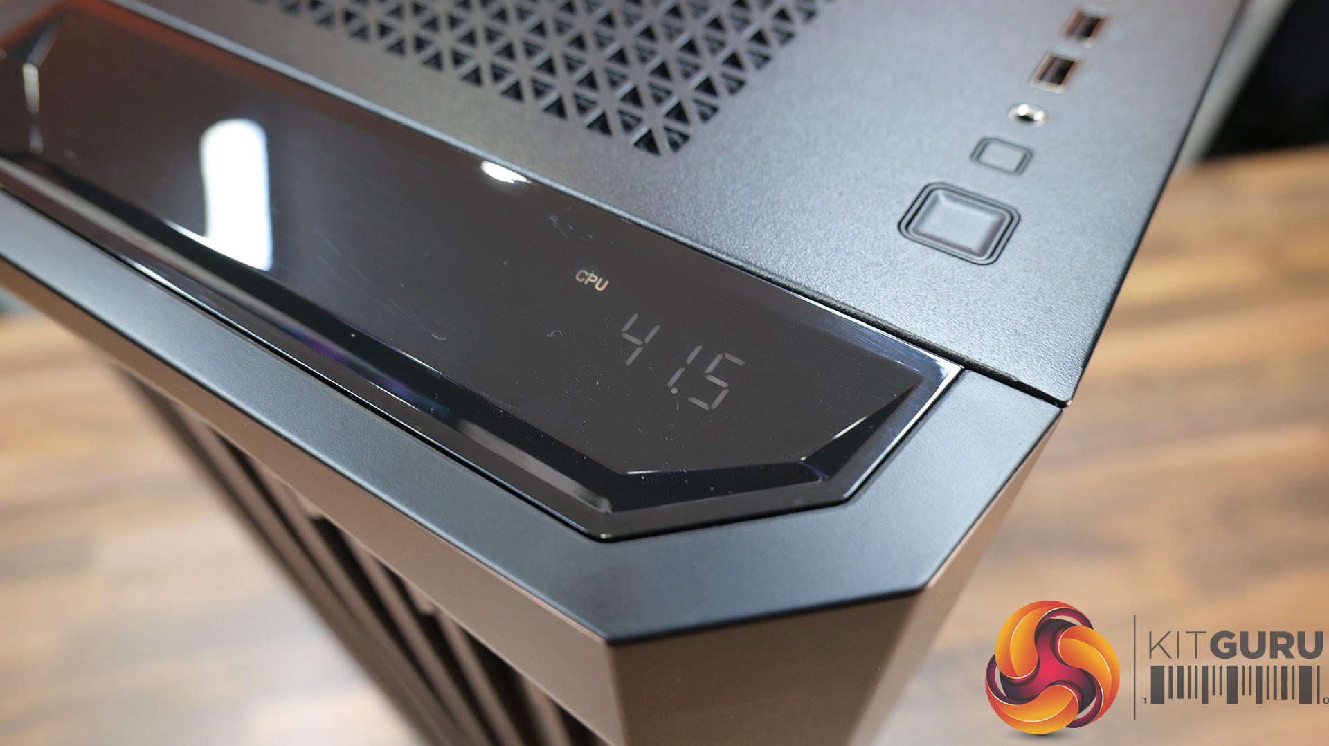 - Front I/O features a temperature display that can either show CPU or GPU temperature or be turned off via a flick of the switch on the front I/O panel.