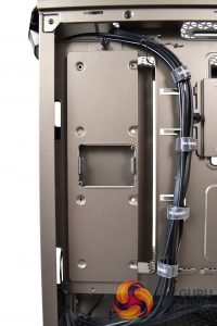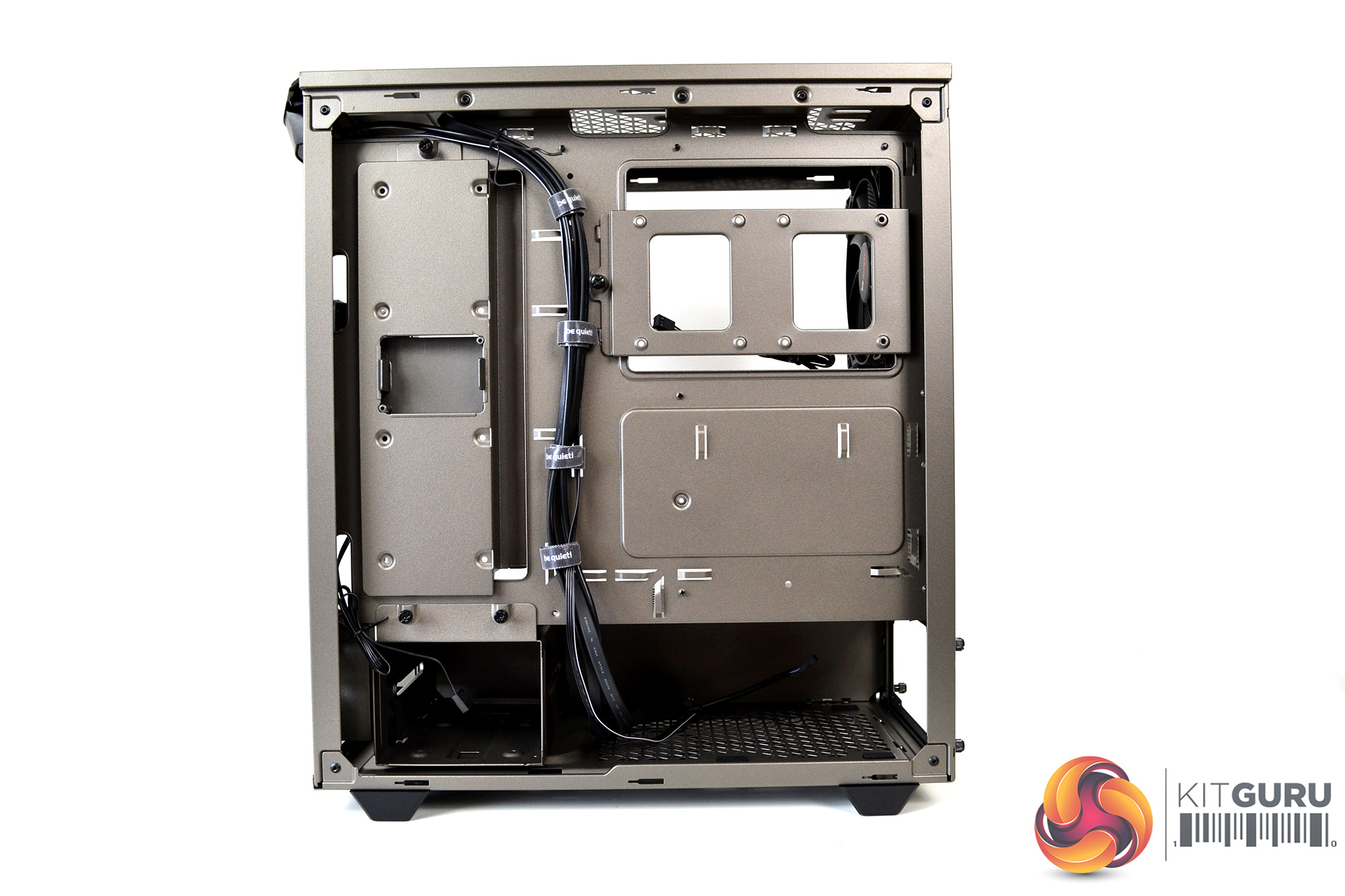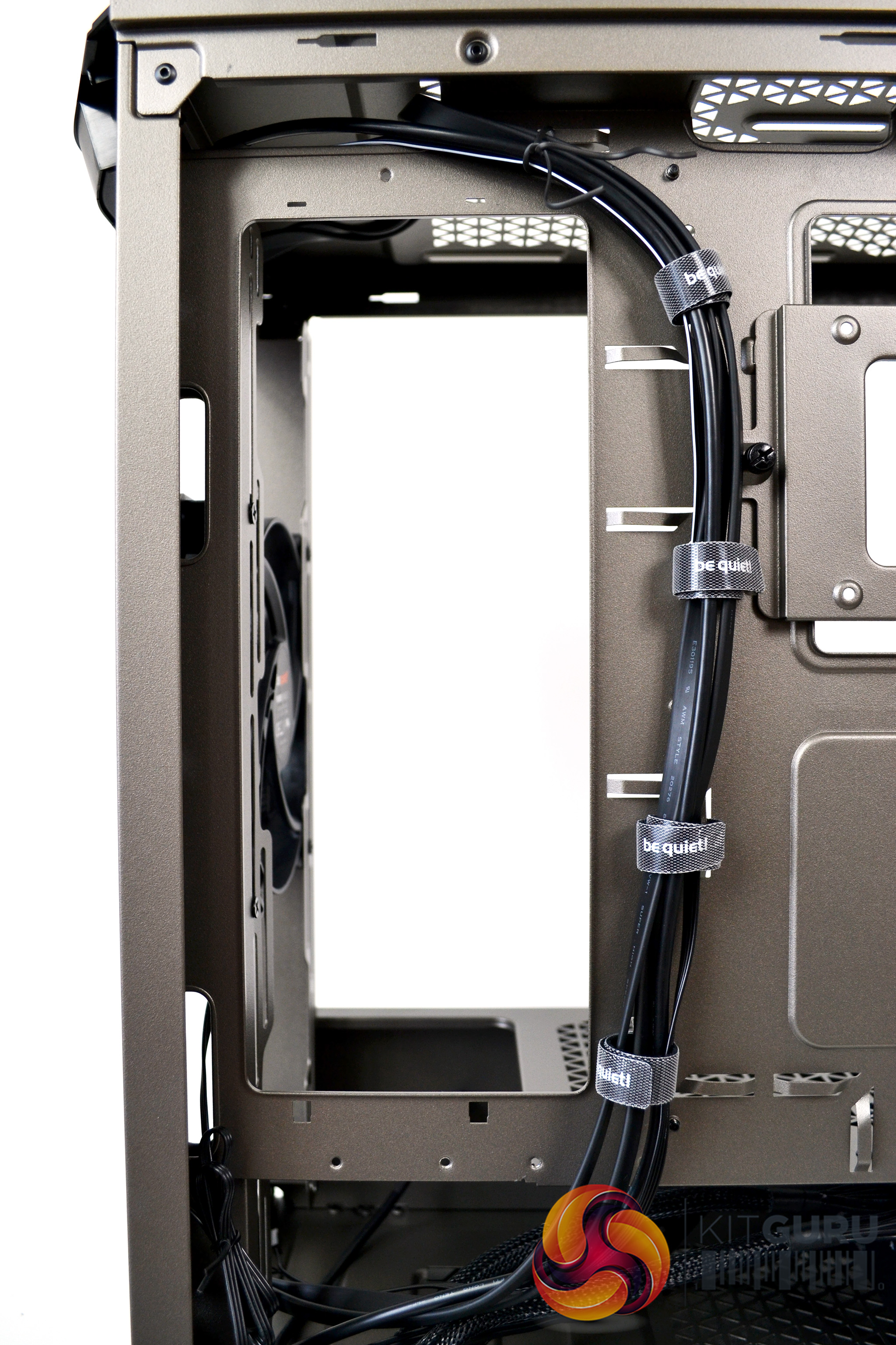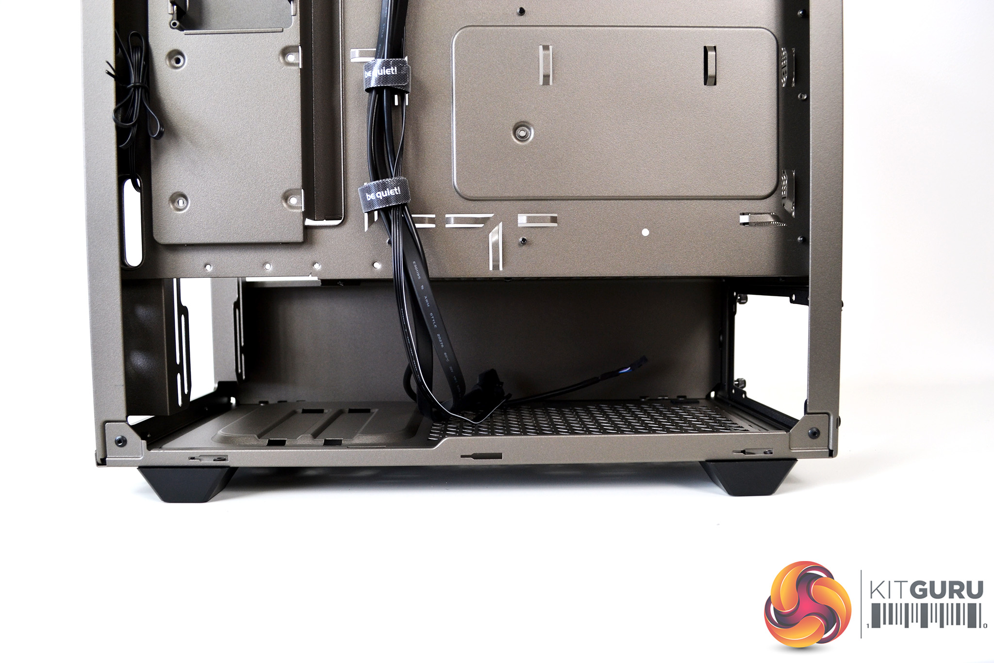 Cable management seems to have been catered for well in the Pure Base 500. be quiet! have included Velcro strips and plenty of eyelets on the back of the motherboard tray. The SSD panel also serves as an innovative passthrough for cables from the back of the case to the motherboard and can be removed to facilitate the installation process.