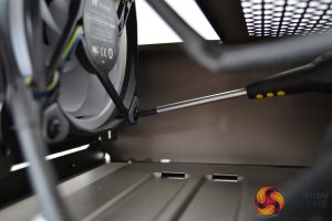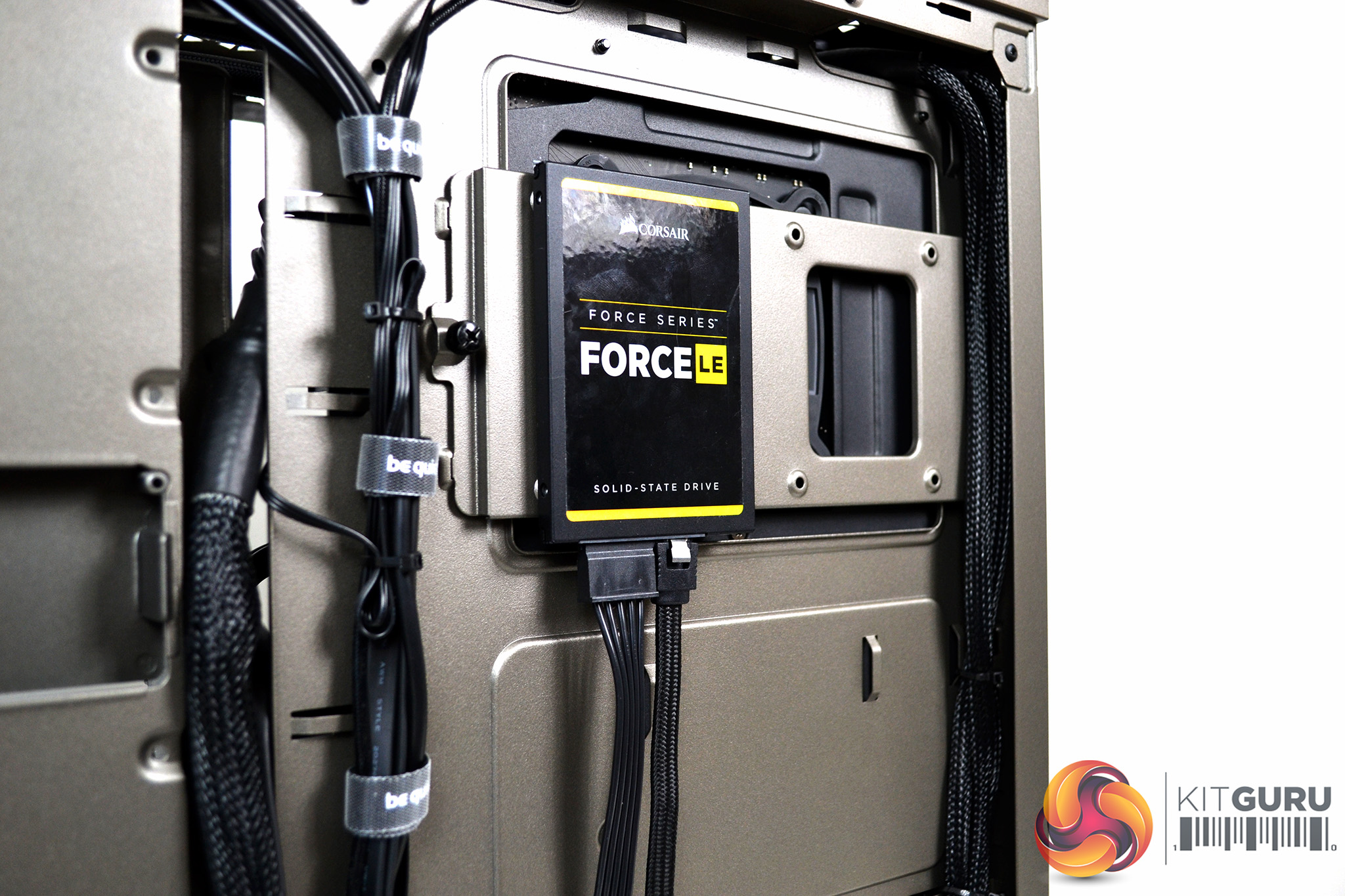 There are three areas where the SSD drive can be installed in the Pure Base 500. We chose to install on the SSD bracket to the rear of the motherboard. This was a simple process – we especially liked the removable nature of the panel, meaning the motherboard didn’t need to be removed to screw the SSD in place.