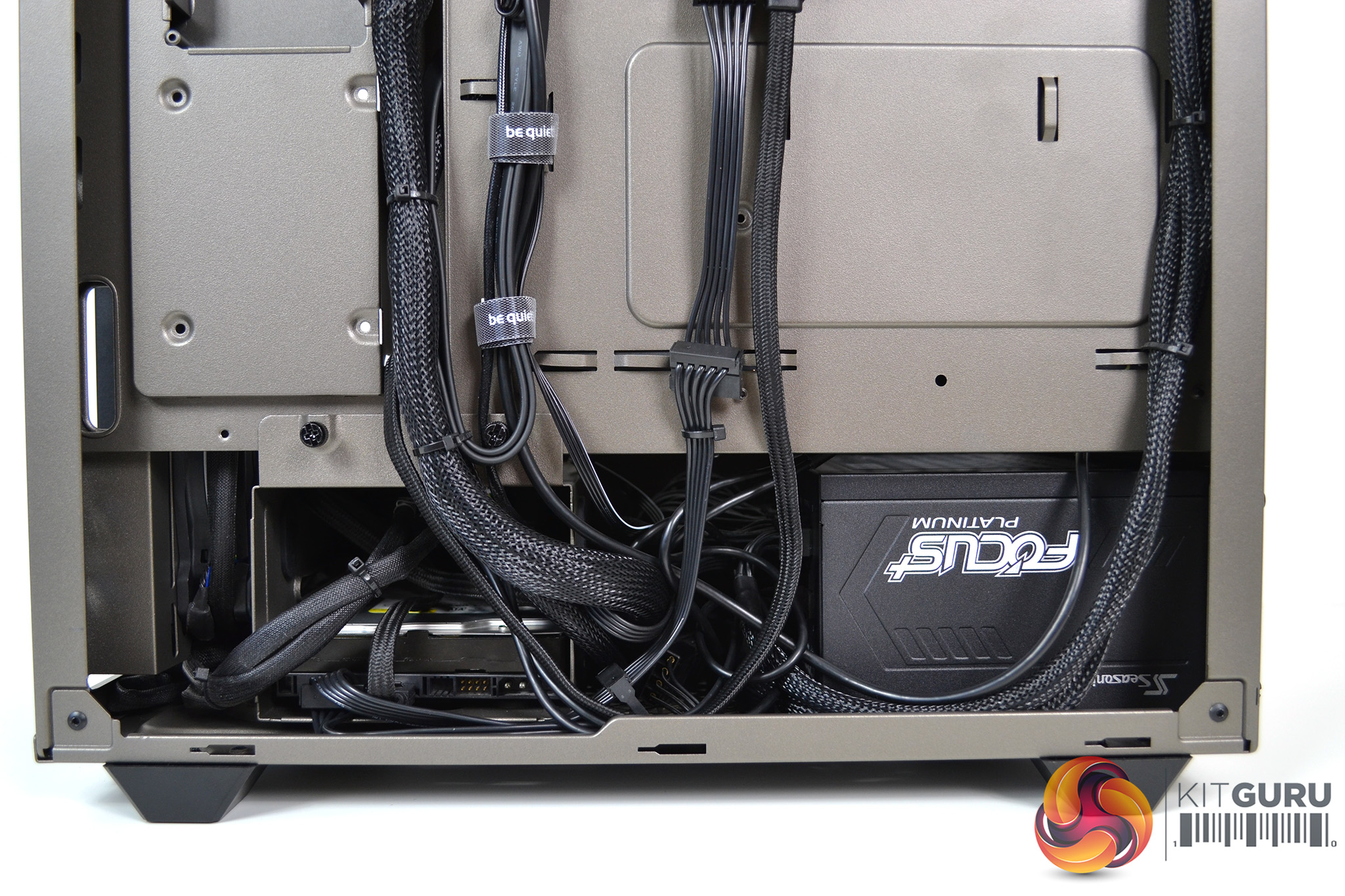 Cable management is a key feature in todays PC builds. In most areas, the Pure base 500 excels with many cable cut outs and tie down eyelets. However, there are one or two issues. Firstly, no rubber grommets are fitted to the cable cut outs which could cause chaffing over time.