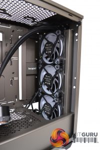 For the full potential of the Floe DX’s RGB lighting to be viewed, we installed the radiator in a pull configuration. This meant mounting the radiator on the outer side of the front mounts. Again, we found no problems – the front panel fitted back on perfectly.