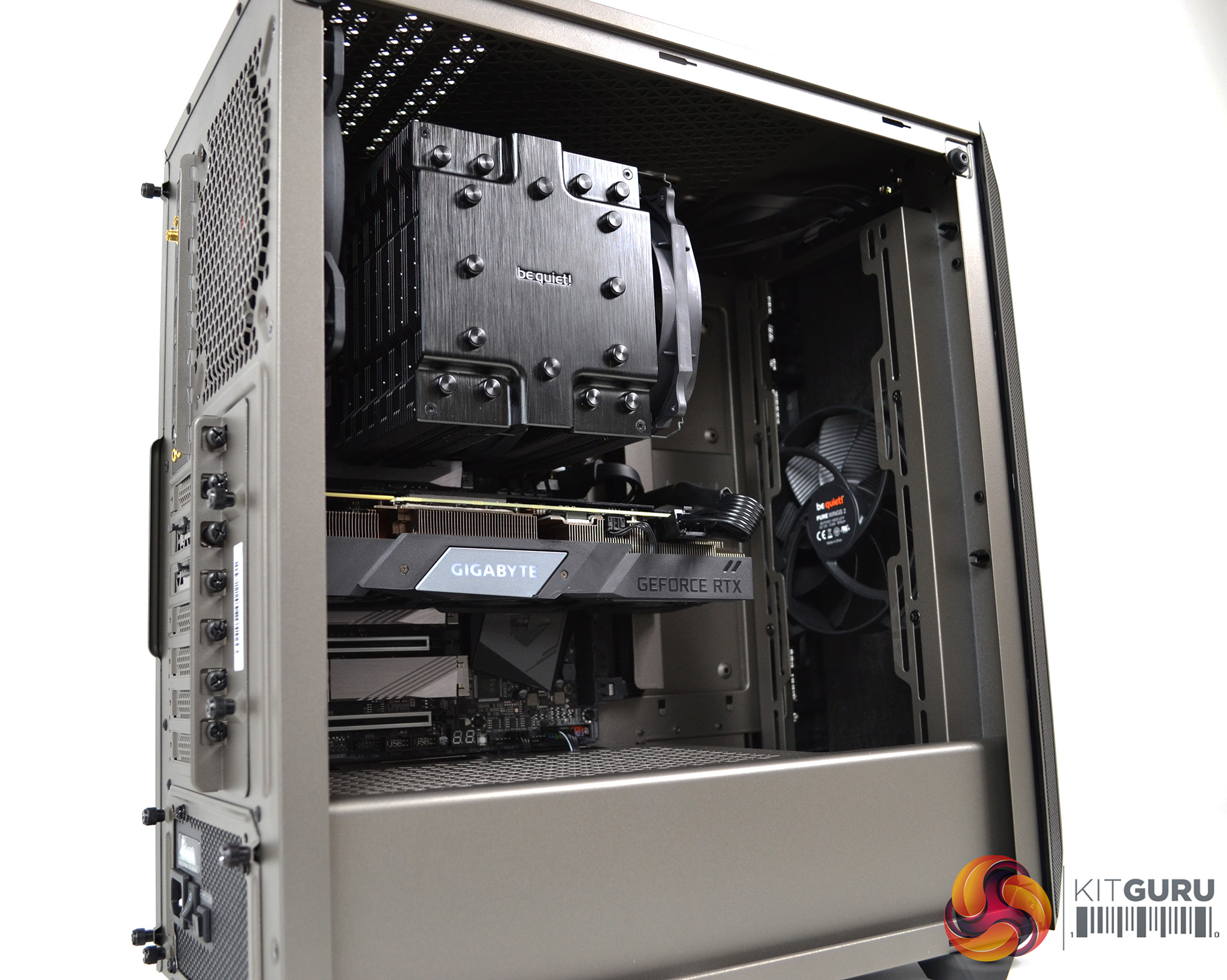 We found plenty of room to install our Gigabyte RTX 2070 Super GPU in the Pure Base 500. The rear PCI-e slots are covered with a shield and when both thumbscrews are loosened off, it allows installation/removal of PCI-e devices by sliding the shield away from the slots.