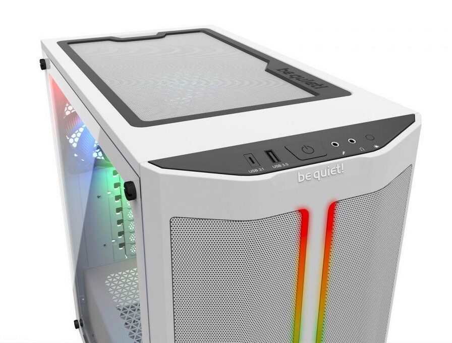 Be quiet! has equipped the front panel with an RGB lighting strip that includes 14 individually addressable RGB LEDs, along with an additional 10 LED addressable RGB strip fixed to the top of the chassis frame. The RGB control button on the case supports six different colours with four lighting pre-sets and three rainbow lighting modes. The lighting can also be completely disabled and a new USB 3.1 Type-C connector replaces a Type-A port on the front panel too.