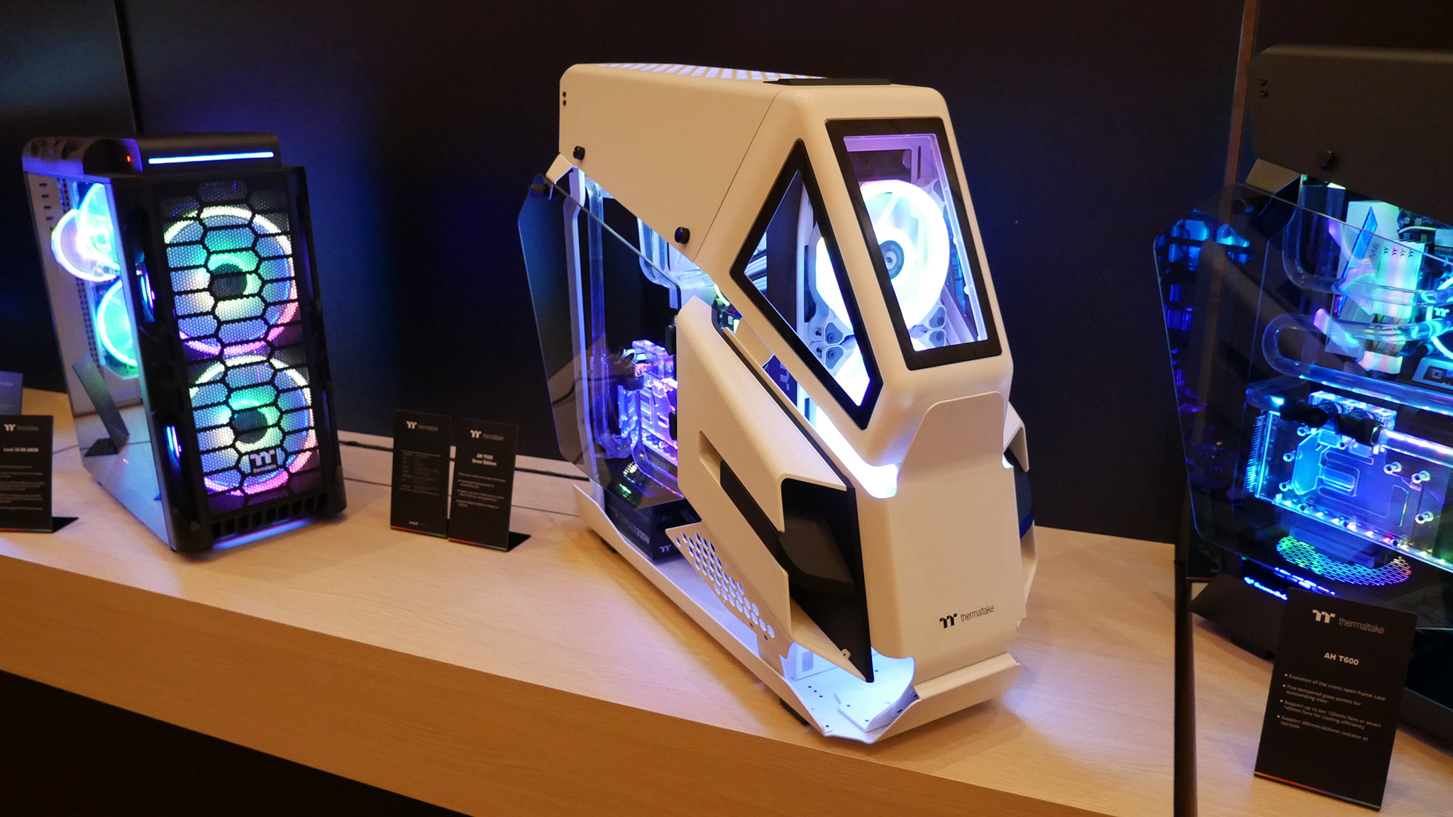 Thermaltake has a range of new peripherals at CES including the TM5 mouse featuring a removable USB cable and RGB lighting, the TK5 keyboard is an updated variant of the TK, designed by Porsche with a detachable wrist rest and Cherry MX switches with added RGB. New PC cases include the View 51 TG ARGB, the AH T600 and the Level 20 RS ARGB which is an updated Level 20 GT with improved airflow from a mesh front panel. Leo liked the GT for its excellent radiator locations but was not impressed with its cooling performance so the RS has the potential to be very good.