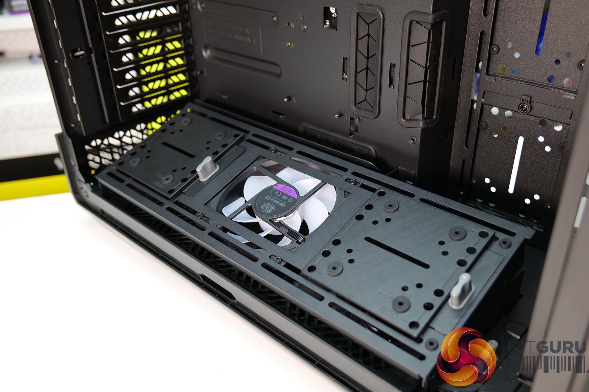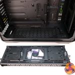 2.5-inch storage drive installation plates are also attached to the fan mounting brackets via the same quick-release system, more 2.5-inch storage drive plates can also be found with tool-free removal in the right-hand compartment, as well as a four bay 2.5/3.5-inch storage compartment that features tool-free removal of the whole bay plus tool-free installation of 3.5-inch drives on plastic inserts. A total of fifteen 2.5 or 3.5-inch drives can be installed in the chassis at once.